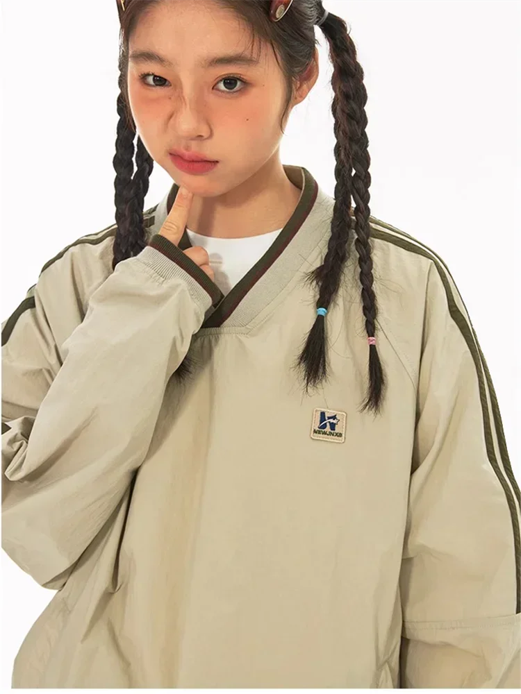 Discover our beautiful beige-black jacket, inspired by 90s streetwear, perfect for adding a retro touch to your alternative wardrobe. Made from lightweight, breathable material, it ensures optimal comfort while allowing you to stand out from the crowd. With its oversized design and sporty lines, this jacket is perfect for city strolls, festivals, or a relaxed day out with friends. Subtle details, such as the embroidered vintage logo on the chest, give this trendy piece an authentic touch. Pair the jacket with high-waisted jeans or leggings for a chic casual look that won't go unnoticed. Let yourself be captivated by the spirit of the 90s and make this jacket your new must-have!