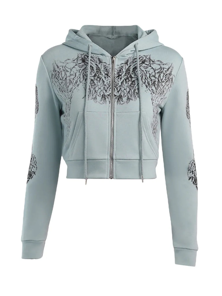 This is the grunge style of the 90s, reinterpreted with contemporary elements. Adopt this gray grunge jacket. The hood and graphic print details give it an original and unique look. Paired with worn-out jeans and a rock 'n' roll T-shirt, you are sure to turn heads.