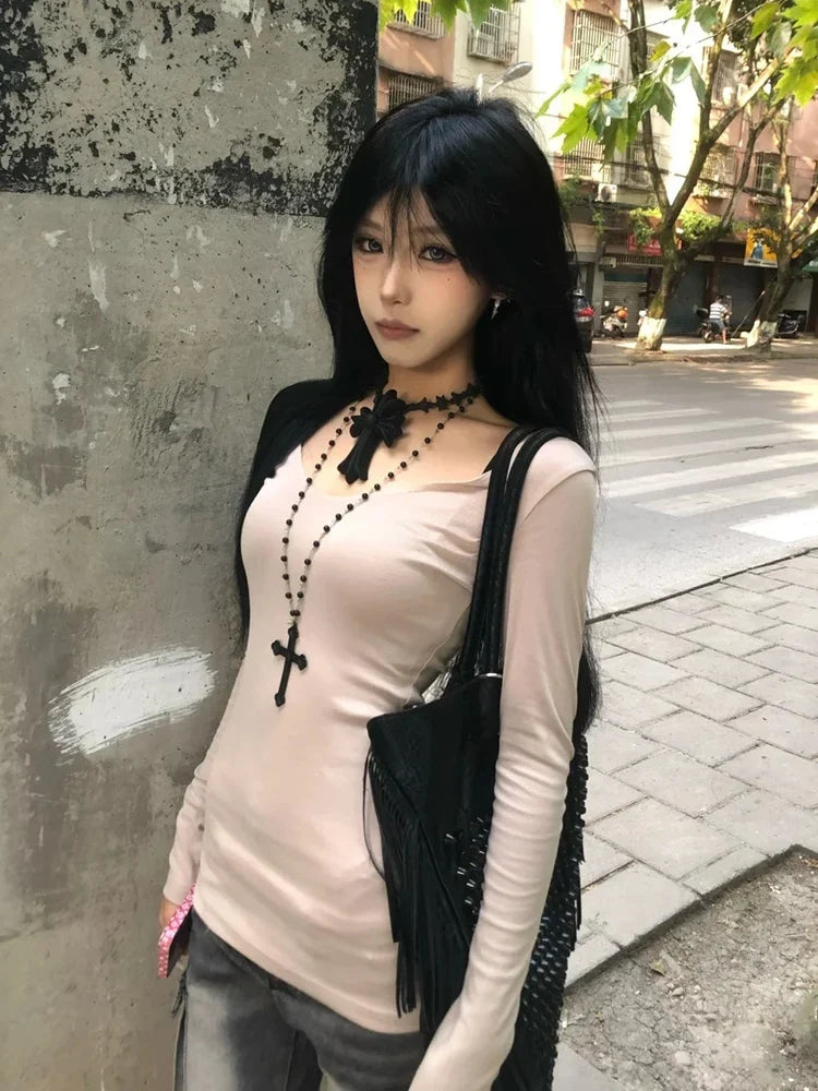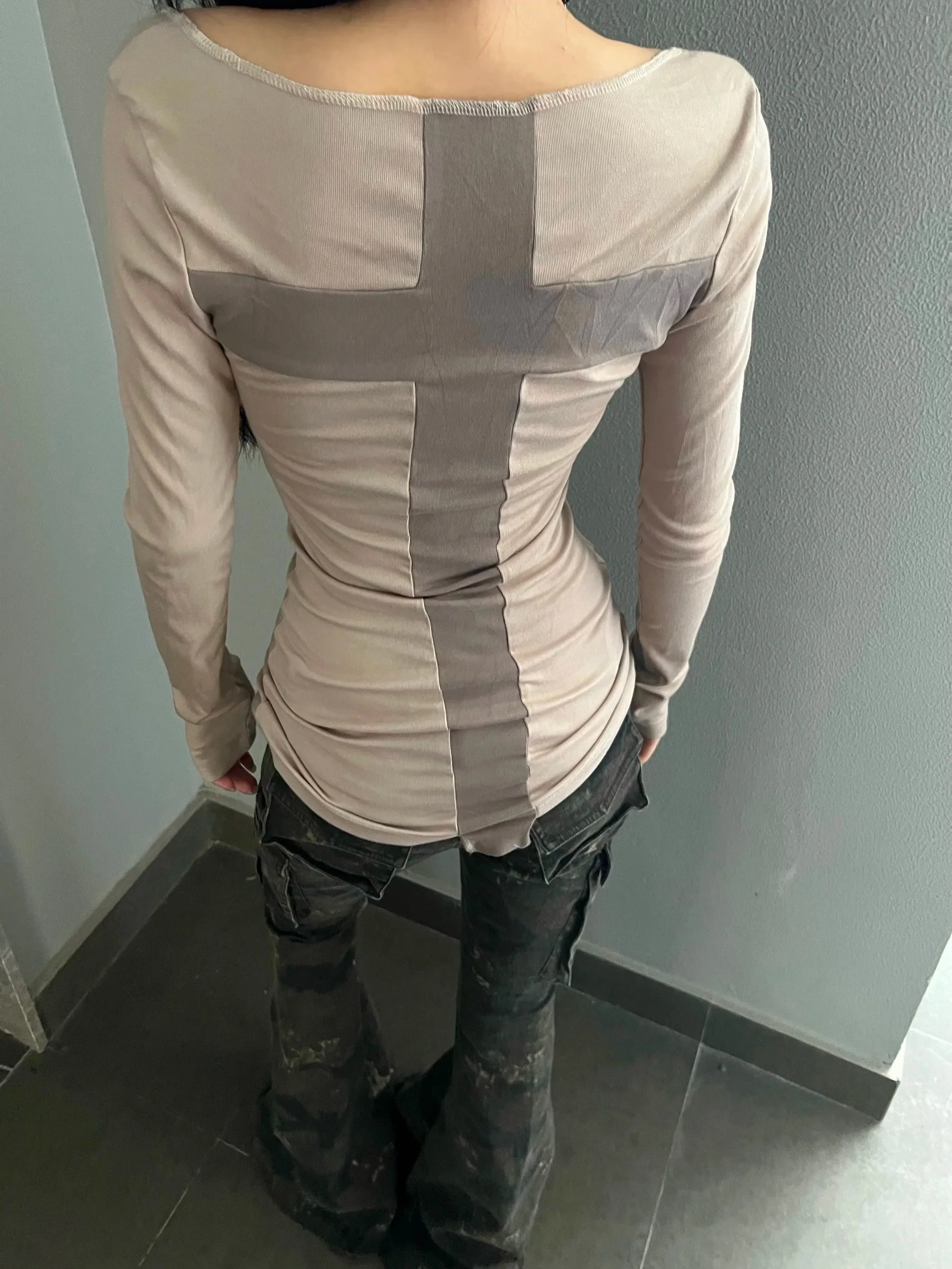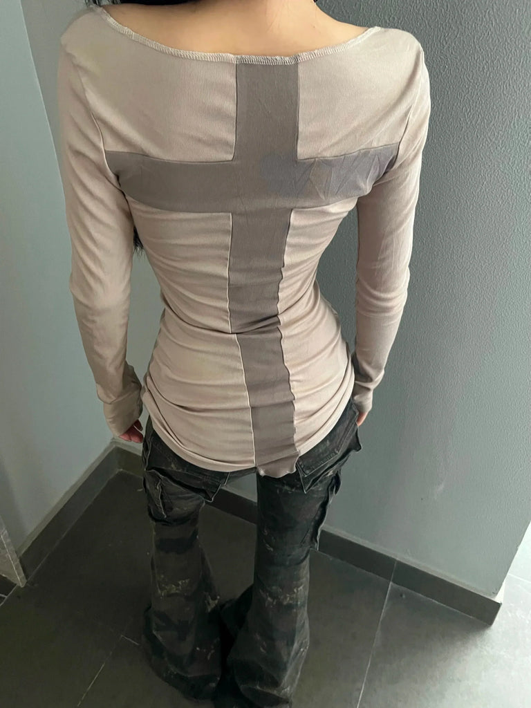 Women Grunge Patchwork Long Sleeve T-Shirt