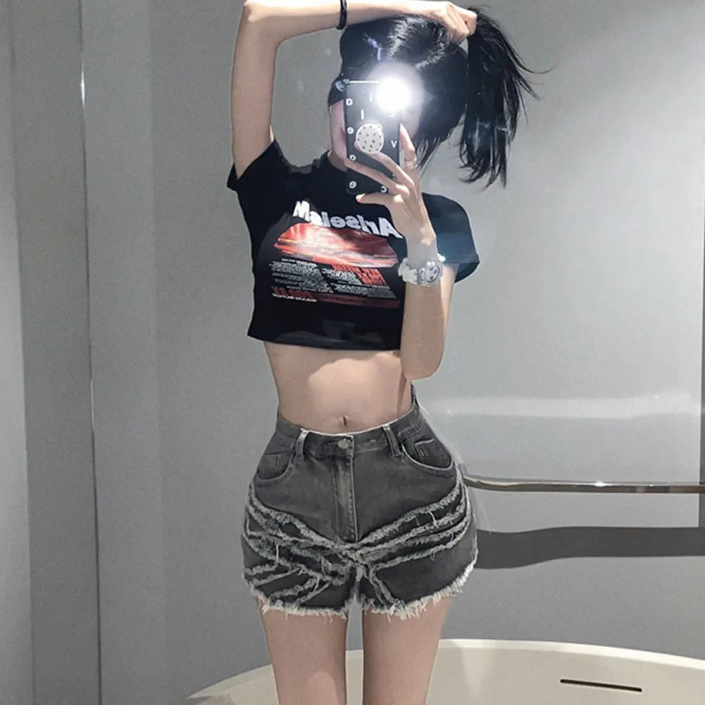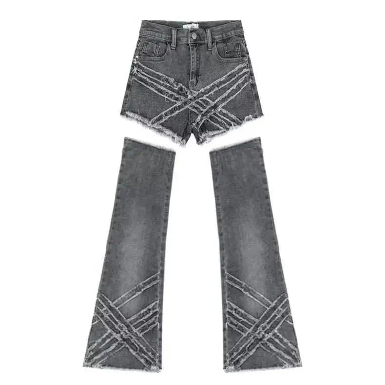 Dive into the alternative world of fashion with the Acubi Denim Shorts for women, a must-have that embodies boldness and originality. This model made from high-quality gray denim features its unique flair cut, which creates a flattering yet casual silhouette. The integrated cuffs provide a retro touch that recalls timeless trends while modernizing the look. The frayed details and used finish give character to every step. Combined with black retro sneakers or ankle boots, it creates an acubi-style that is impossible to overlook.