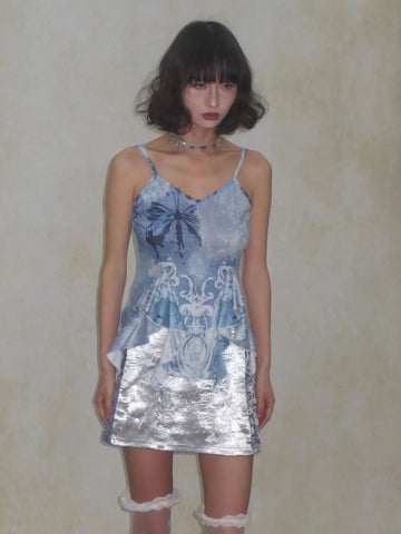Acubi Grunge Blue Sleeveless T-Shirt for Women