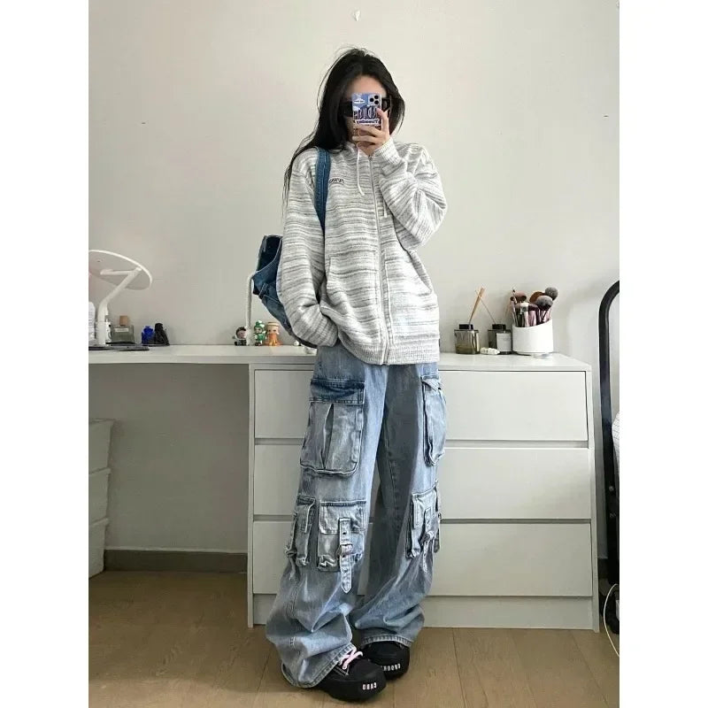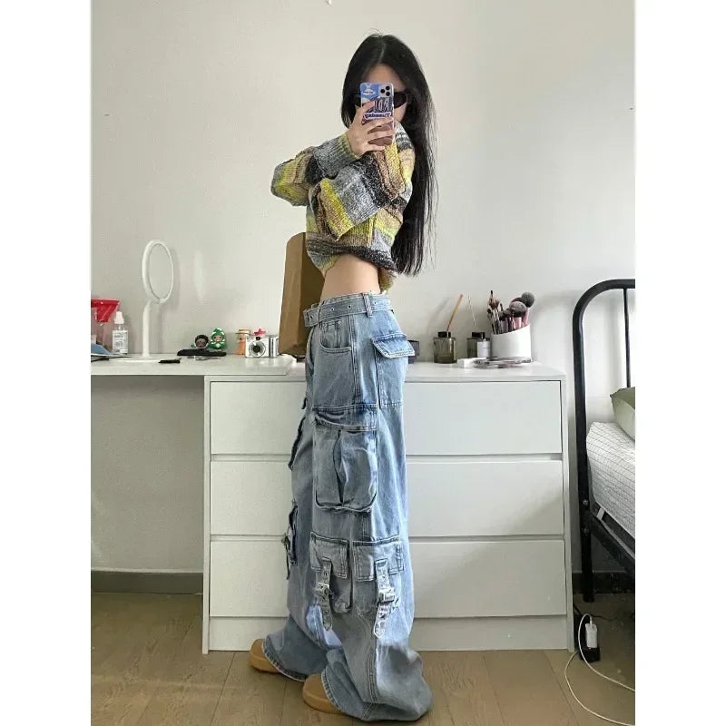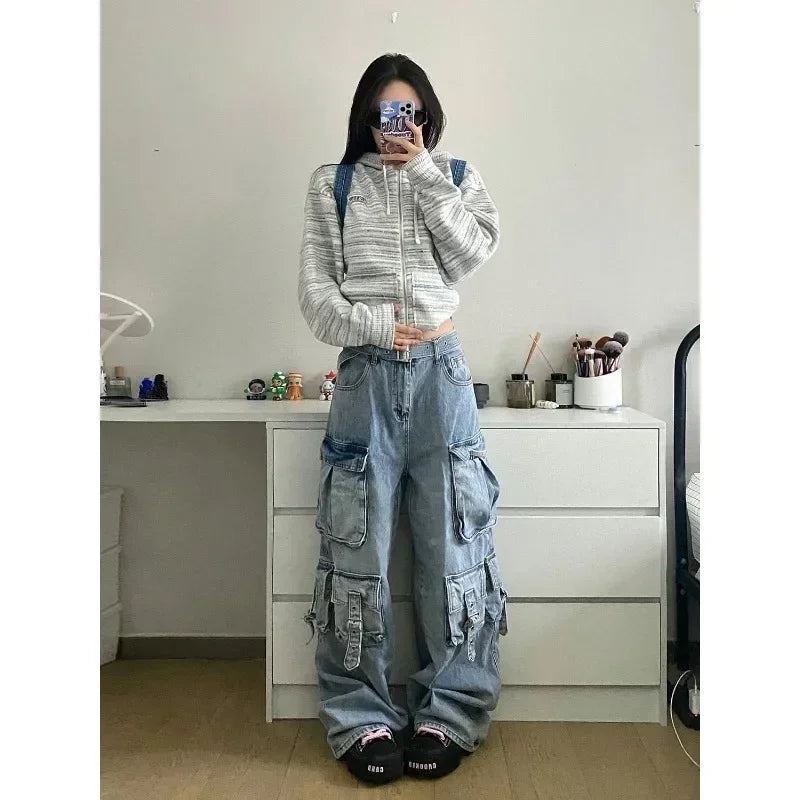 Acubi Oversize Cargo Jeans Wide Leg Pants with Many Pockets