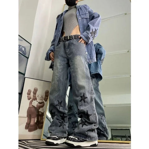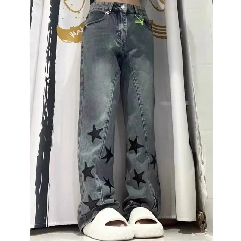 Star Pattern Jeans in Acubi Style for Trend-Conscious Women