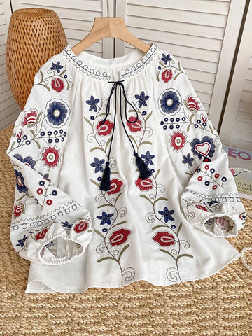 Blouse in Indie Retro Style with Embroidery