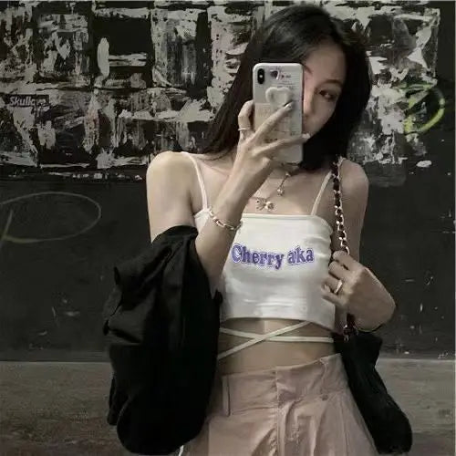 Discover the must-have of the alternative wardrobe with this black camisole crop top that embodies the rebellious and playful essence of E-Girl fashion. Made from soft, comfortable material, the short top accentuates a seductive silhouette and offers an avant-garde touch with its crossed strap details. The bold message "JUST DIE." printed in white letters adds a provocative and ironic dimension that perfectly captures the cheeky spirit of the E-Girl trend. Complemented by thin, adjustable straps for a customized fit, this top is the perfect addition for anyone daring to stand out from the crowd. Pair it with high-waisted jeans or a black skirt for a characterful outfit that is sure to turn heads. Add a chunky necklace to create a completely revolutionary look. Express your bold and independent side while looking fresh and trendy.