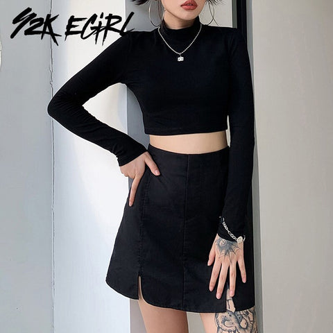 Deep V-Neck Zipper Tee Blouse Long Sleeve Crop Top for Women