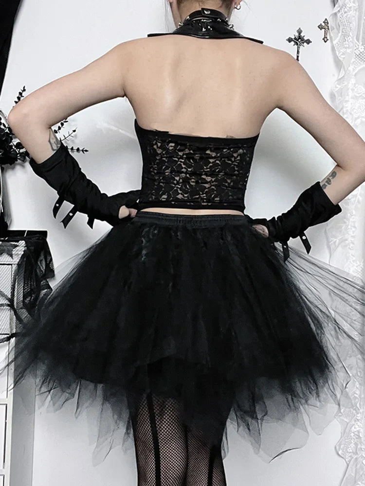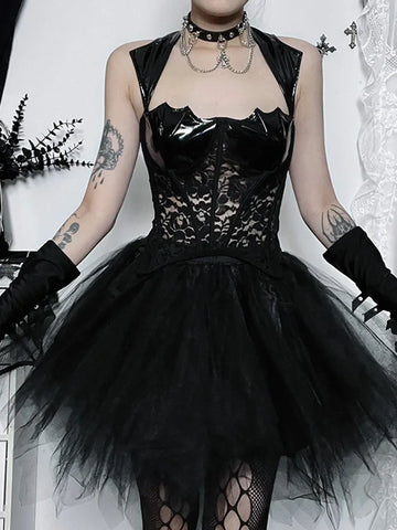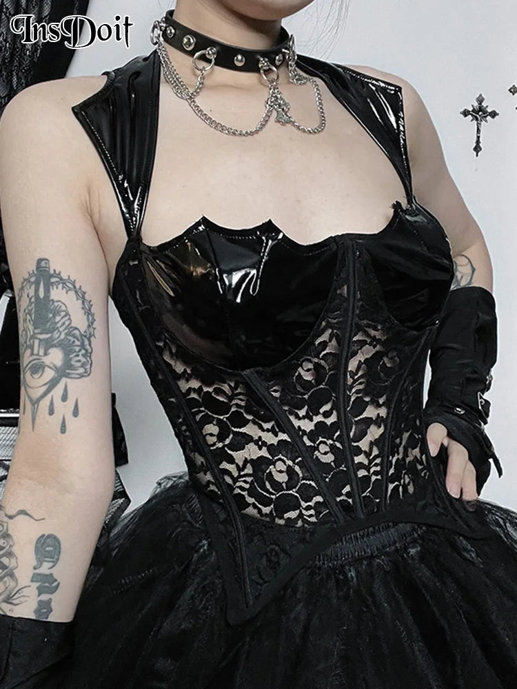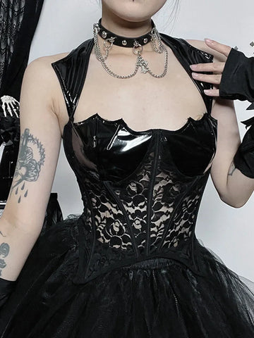 Gothic PU Leather Crop Top with Lace in Retro Style