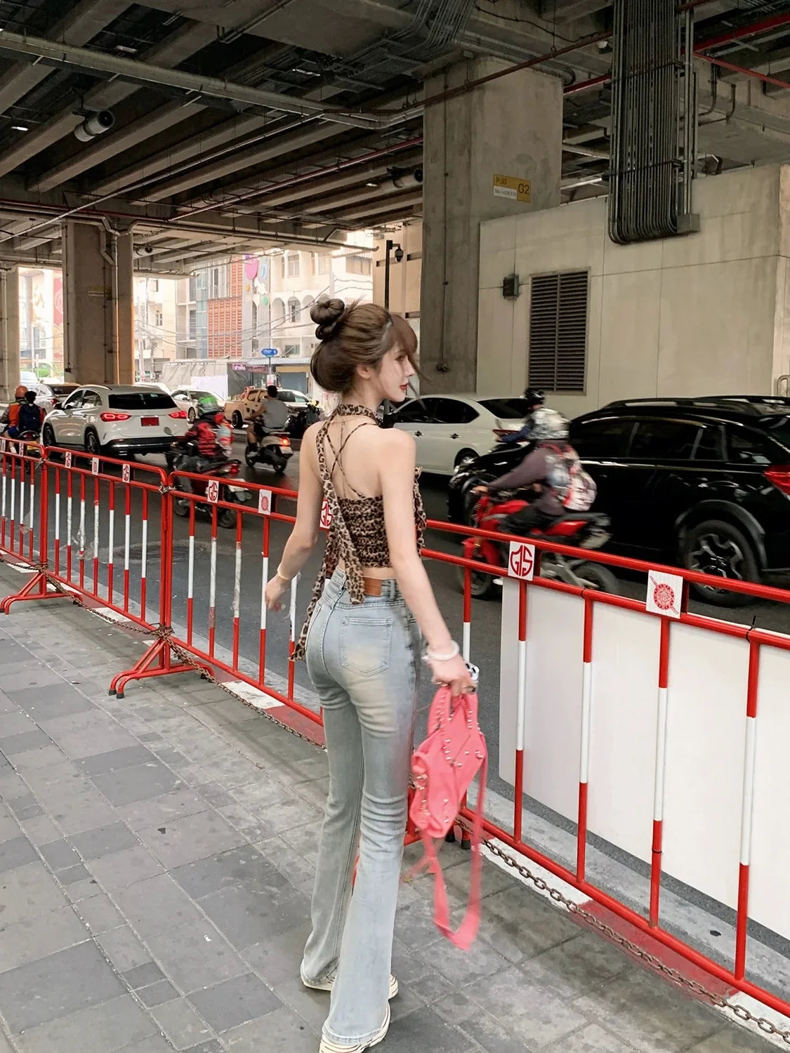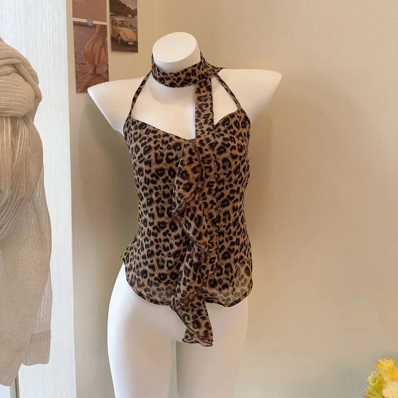 Rediscover the iconic style of the Y2K years with this daring leopard crop top vest, designed for those who aren't afraid to express their personality through their wardrobe. This sleeveless top perfectly captures the spirit of freedom and rebellion of that time and embodies the essence of alternative fashion. Wear it and feel the vibrant energy of an impromptu party or a stroll under the city's neon lights. Made from a soft, comfortable fabric, it promises a pleasant feel on the skin while providing a flattering fit that accentuates your figure. With its timeless leopard pattern, this crop top is both sexy and casual, ideal for making a statement on a trip with friends or at an underground concert. Thanks to its versatility, you can pair it with a fitted leather skirt as shown in the picture or with ripped high-waisted jeans for a reinterpreted grunge look.