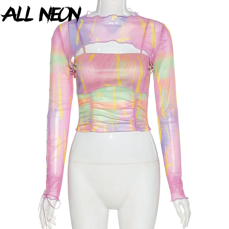 Long Sleeve E-Girl Psychedelic Color Crop Top