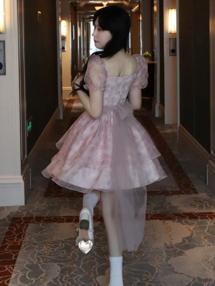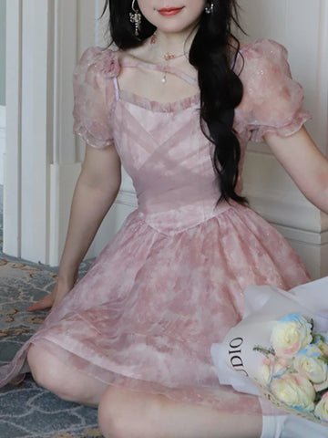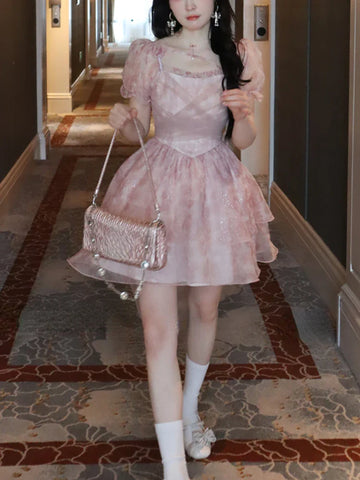 Discover the essence of summer sweetness with our stunning Lolita Kawaii Dress Summer Rose, an irresistibly fairytale-like creation for lovers of alternative fashion who want to add a touch of enchanting elegance to their beach and street wardrobe. This mini dress with puff sleeves offers a comfortable, flattering fit that gently hugs your silhouette. The fabric feels light and airy, perfect for strolls in the summer sun. Adorned with a subtly integrated floral pattern, it evokes a world of poetry and daydreaming. The pearl gray tone contrasts with the title but still recalls the delicacy and freshness of pastel colors. The delicate overlay of the veil creates wonderful depth and texture, highlighted by glitter details that gracefully reflect light with every movement.