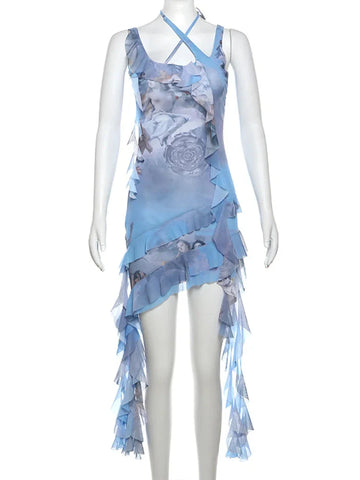 Experience summer with style and boldness in our softgirl dress featuring a portrait print, a must-have of the season for rebellious and creative souls. This softgirl model is adorned with irregular ruffles, giving it a touch of delicacy and movement and bestowing a unique, soft aesthetic that you won't find anywhere else. This red dress made from lightweight, flowing fabric showcases artistic portraits that attract attention with every appearance. The asymmetric empire design and flattering cut adapt to any figure, making the dress the perfect choice.