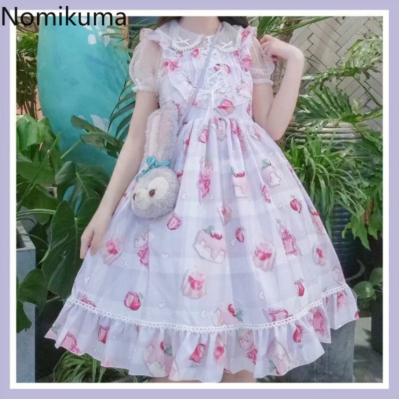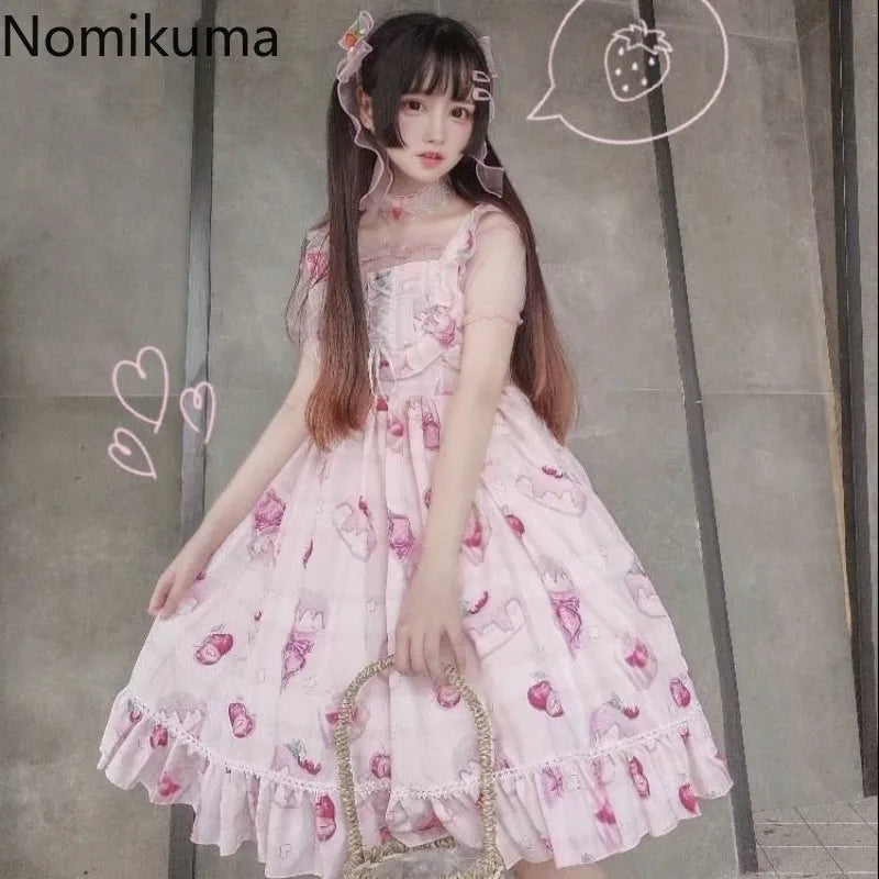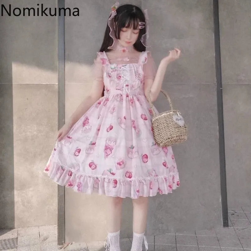 Lolita Style Dress for Women Cherry Blossom Print, Sleeveless