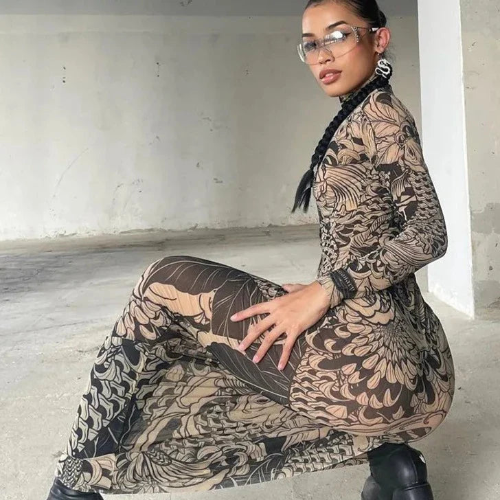 Maxi Dress in Printed Mesh for Women Y2K