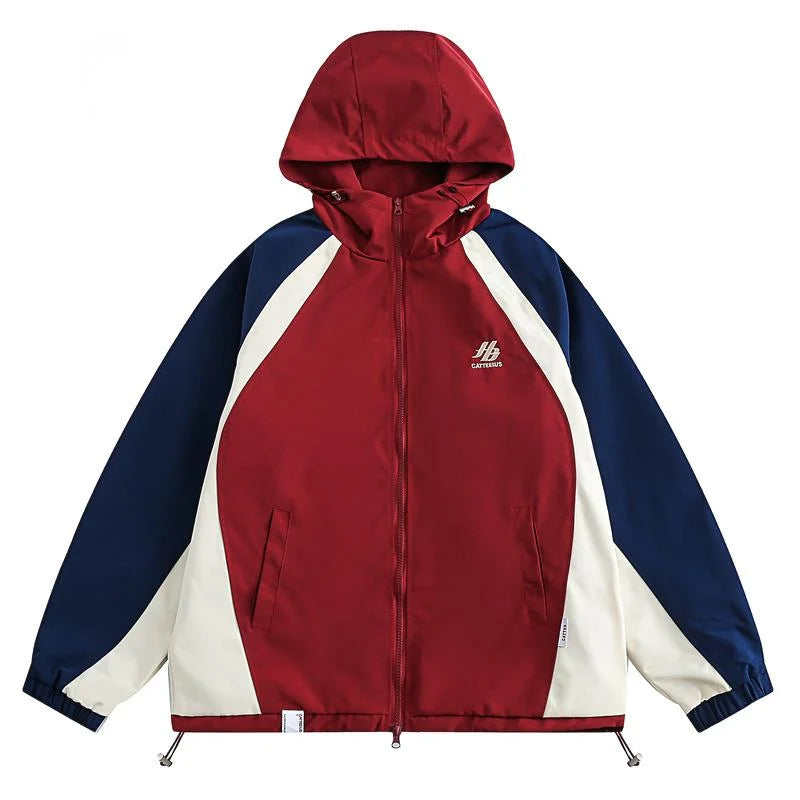 Immerse yourself in the spirit of the 90s with our contrasting retro hoodie jacket, perfect for spring and autumn. This iconic piece is designed for bold souls who love to combine style and comfort. It evokes hip-hop while perfectly fitting the alternative trend. The harmonious color palette with shades of burgundy and blue catches the eye and adds a dynamic touch to any outfit. Made from high-quality materials, it keeps you warm while providing freedom of movement. Whether you wear it in the city or at a festival, this jacket is the perfect choice for a unique 90s retro style. Complete your wardrobe with this reissued classic!