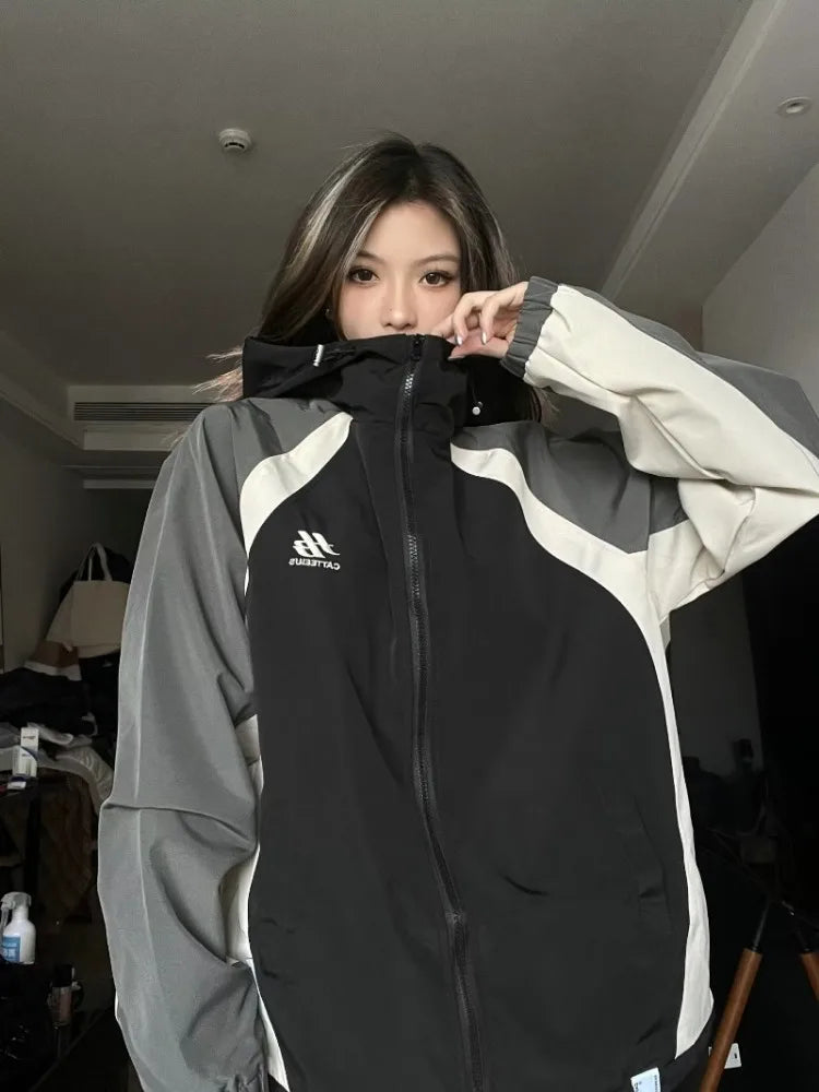 90's Retro Contrast Hoodie Jacket for Women and Autumn Fashion