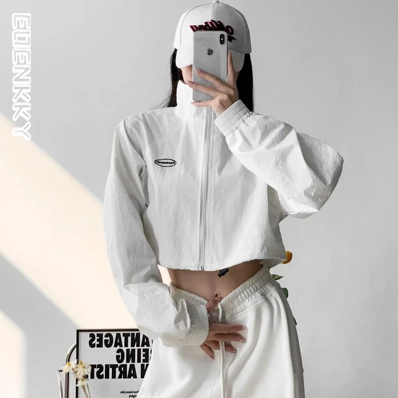 Crop Windbreaker Jacket Women with Zipper techwear Style