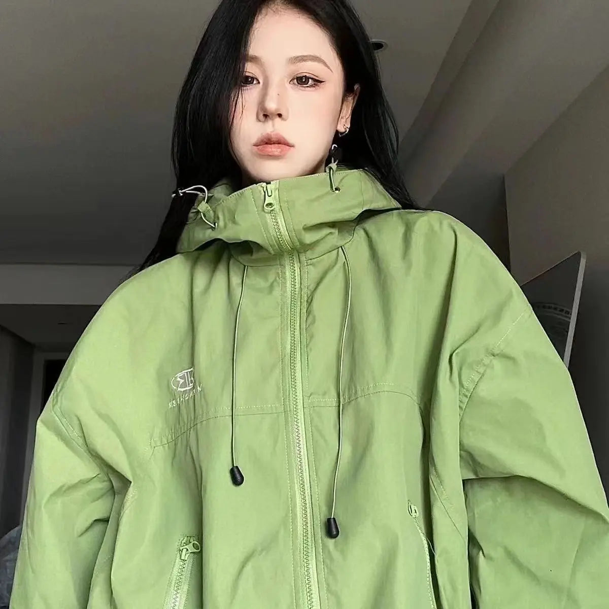 Gorpcore Streetwear Jacket with Hood Black Green and Red