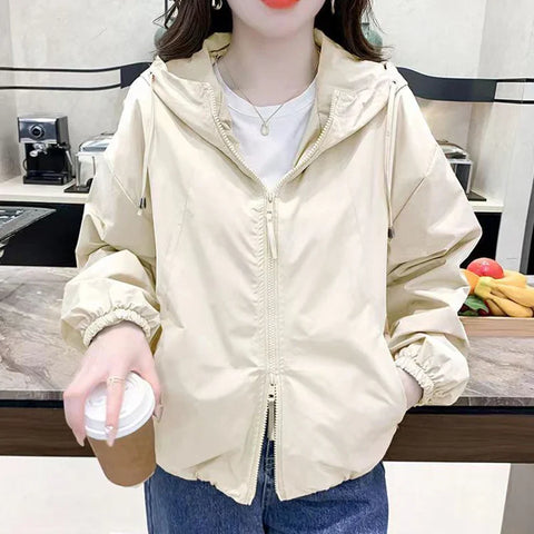 Discover our elegant hooded jacket with a stand collar, a must-have for your alternative wardrobe. This hooded jacket in a soft, timeless beige tone is perfect for adding a modern touch to any outfit. With its practical zipper and elastic ruffles at the sleeves, it combines comfort and style. Whether for a leisurely stroll or a day out with friends, the casual design and figure-hugging cut flatter every shape. With this versatile piece that pairs perfectly with your favorite outfits, you can feel good while hitting the contemporary vibe. This lightweight and comfortable jacket is your ally when you want to look chic and trendy while spending time outdoors. Add it to your wardrobe now!