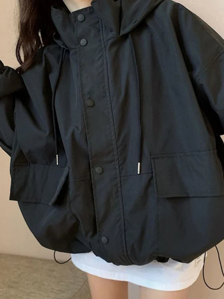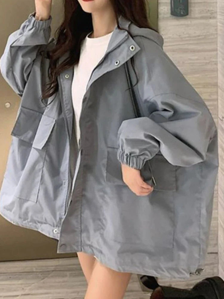 Comfy gray oversized hooded jacket for extraordinary looks