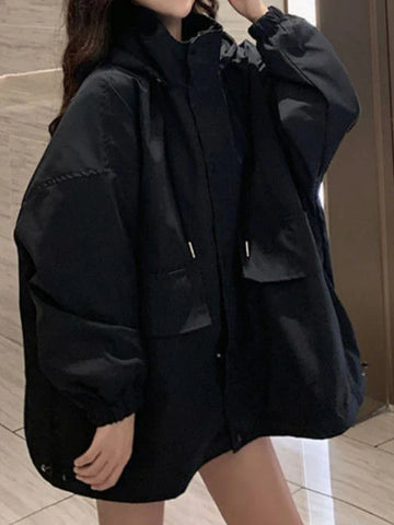 Get ready for a casual style with our oversized hooded coat - a perfect basic for your alternative wardrobe. In a soft, calming gray shade, this jacket exudes a relaxed vibe while offering functionality and comfort. With its oversized cut, it drapes wonderfully over any outfit and is also suitable for the colder months. The lightweight and durable material ensures a pleasant wearing experience without being cumbersome. The large pockets are not only practical for your phone and other essentials but also give the jacket a stylish look that combines functionality with modern fashion. Features such as the adjustable drawstring on the hood allow for a personalized fit to meet your needs - whether you want to protect yourself from the elements or make a statement with your outfit.