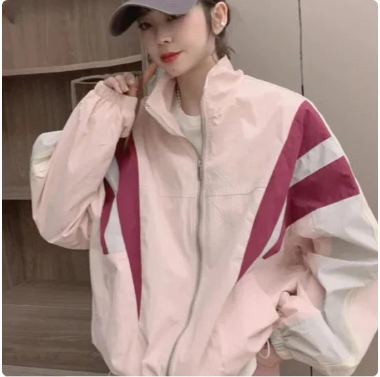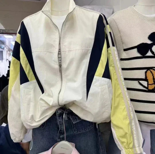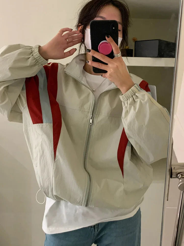 Patchwork Striped Bomber Jacket Y2K Oversized