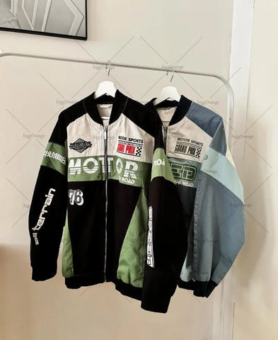 Y2K American Pilot Jacket Blue and Green Patchwork Unisex