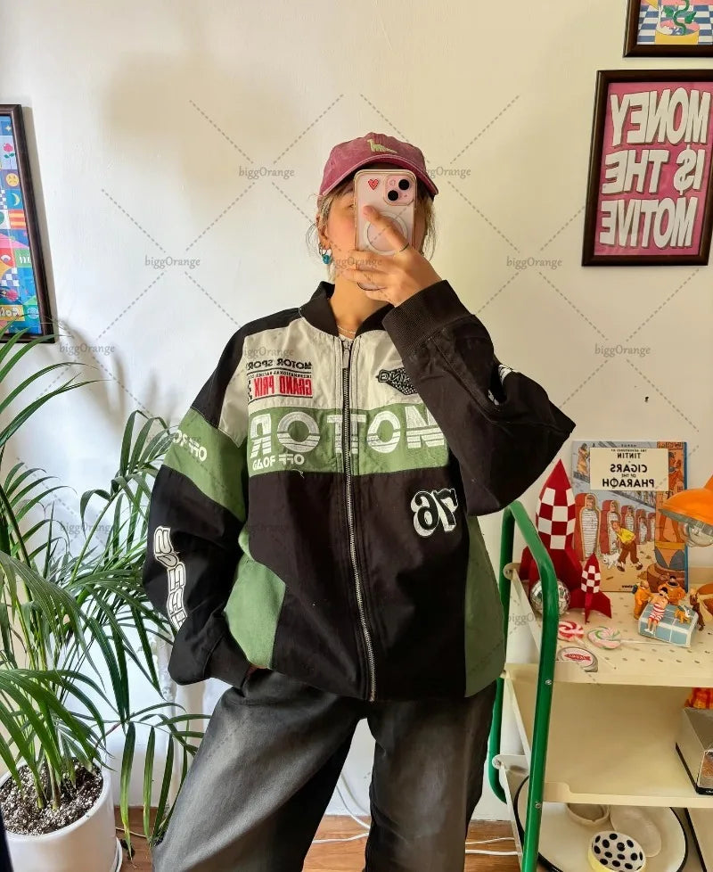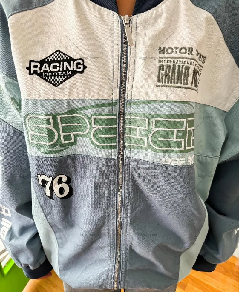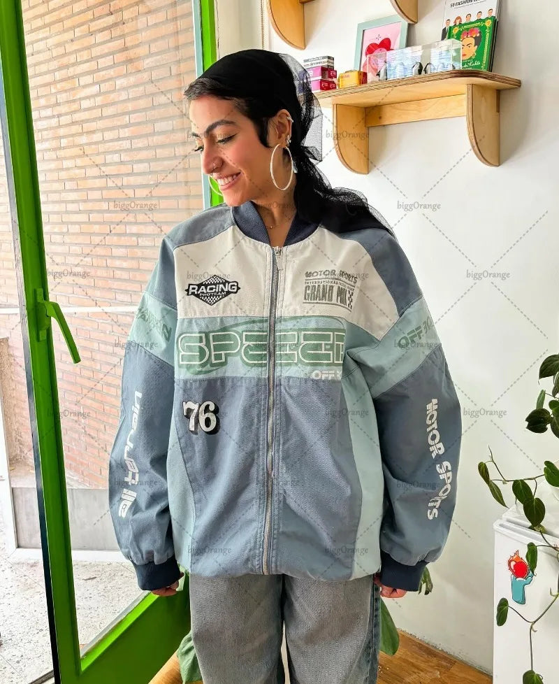Dive into the spirit of the 2000s with our Y2K American Pilot Jacket, a must-have for all alternative fashion lovers. This unique model combines a fresh color palette with sporty-inspired details. The light blue and gray tones create a casual and stylish atmosphere that pairs perfectly with any outfit. With the practical front zipper and cheeky embroidery, including the "SPEED" logo and the number "76," this piece guarantees a flawless American look on every outing. The wide sleeve cuffs and stand-up collar provide optimal wearing comfort while adding a distinctive touch to the garment. Show off your bold style while celebrating the heritage of hip-hop fashion! Whether you're out and about in the city or hanging out with friends - this jacket is the perfect choice for anyone looking to stand out from the crowd.
