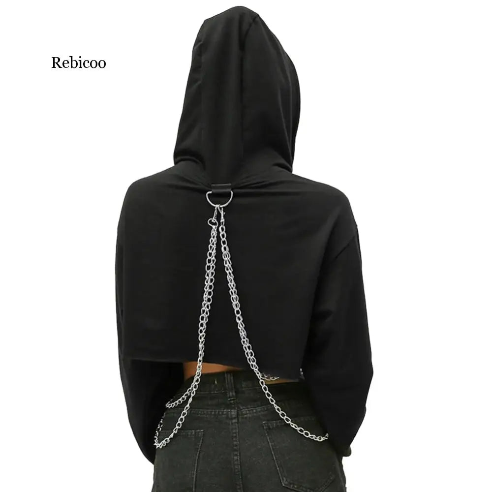 Black and white checkered pattern crop hoodie with chain for E-girl