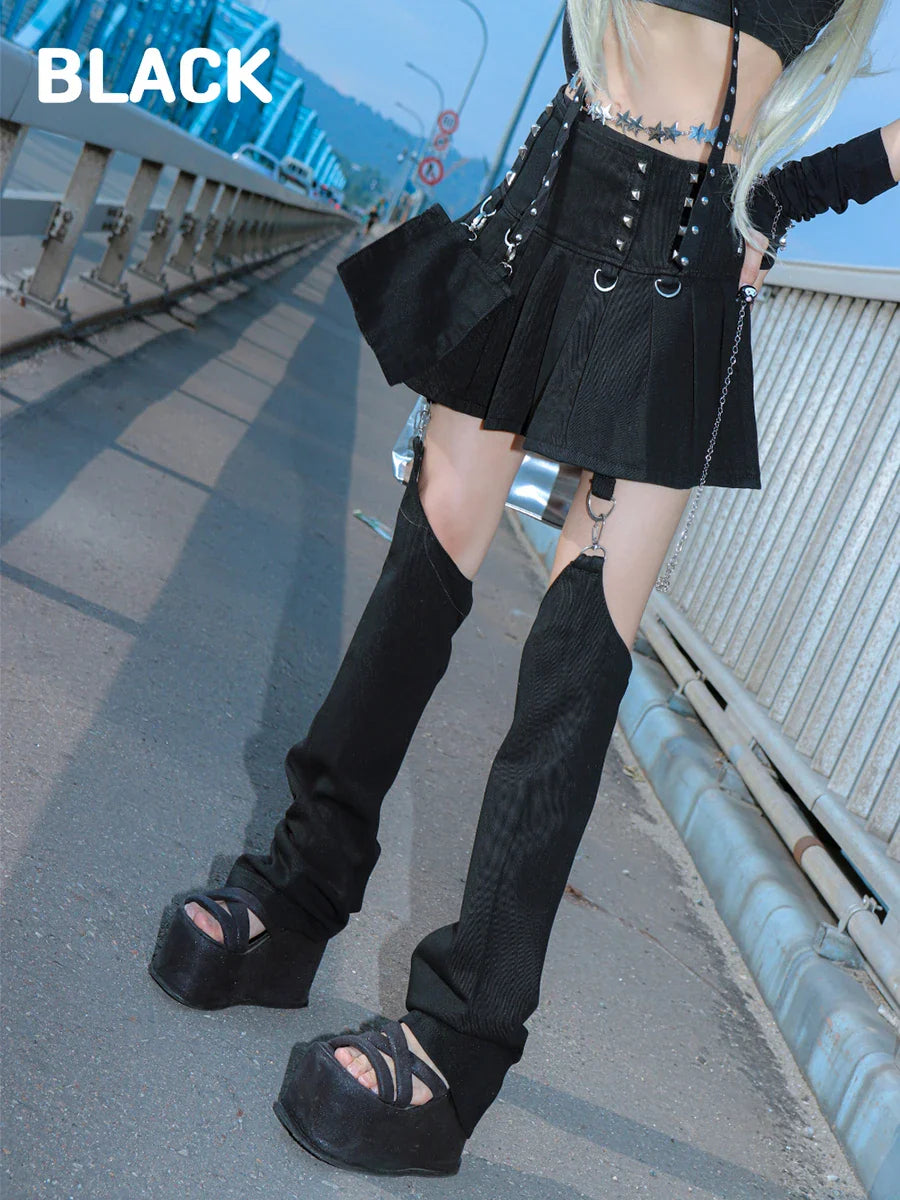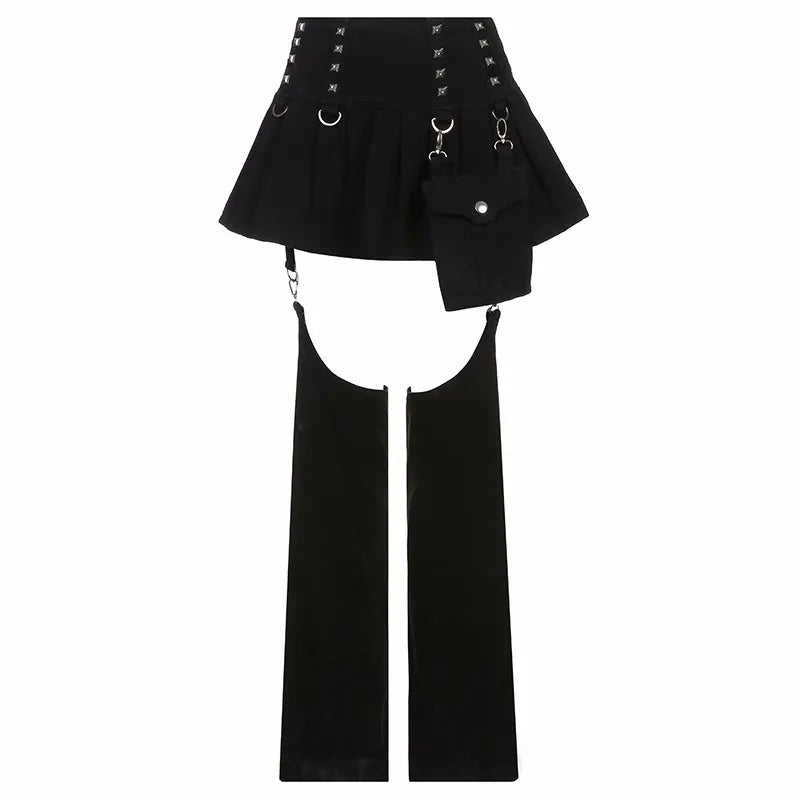 Dive into the bold world of Rokku Grayu Fashion with our exclusive ensemble featuring a black denim mini skirt, reinvented for women who dare to emphasize their individuality. Our Black Pleated Mini Skirt made from alternative denim is the essence of Rokku Grayu aesthetics and perfect for capturing a rebellious and avant-garde spirit. With lace-up details and hanging metal embellishments, this skirt is designed for women who make fashion a form of personal expression. The clear pleats provide movement and dynamism with every step, while the flared cut flatters every figure, creating a perfect combination of comfort and style. Pair the skirt with Black Denim Leggings for a cohesive and trendy look. The design pairs perfectly with the skirt, adding a touch of boldness to your silhouette. Make a fashion statement with our transparent mini bag, the perfect accessory to give your outfit a contemporary and functional touch.