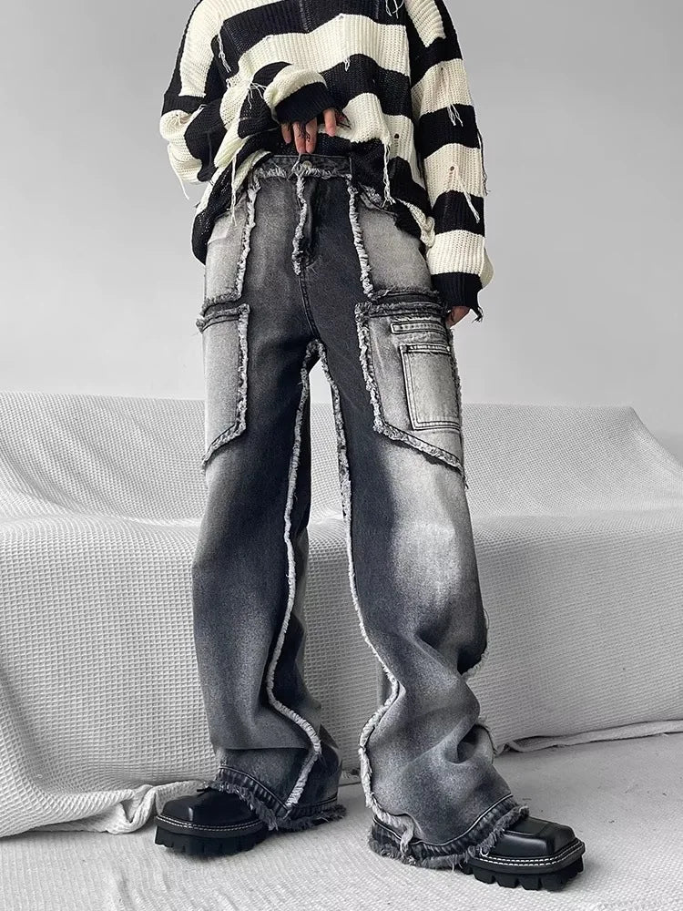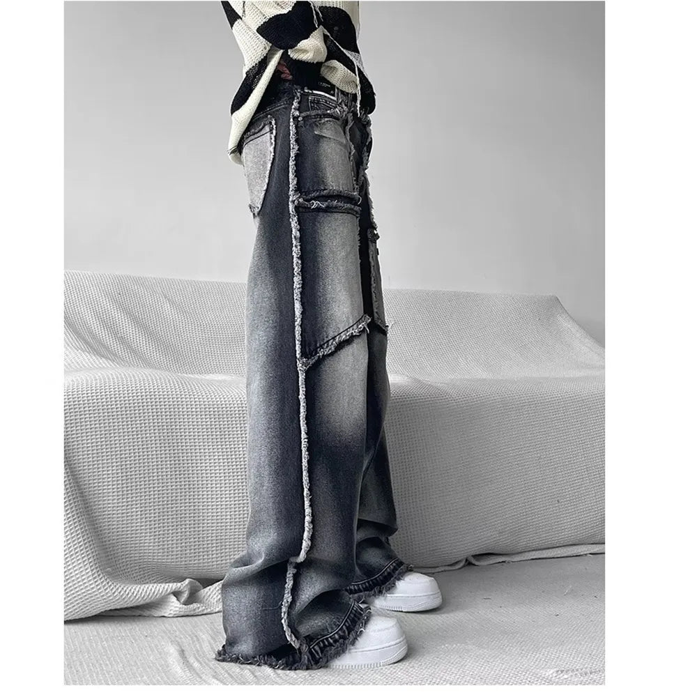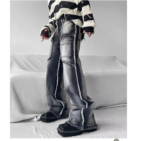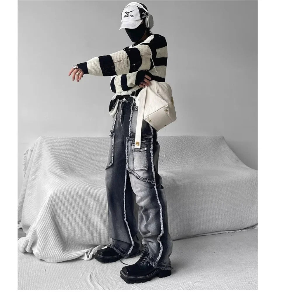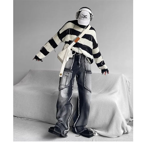 Unisex Pants e-girl white and black washed Baggy cut
