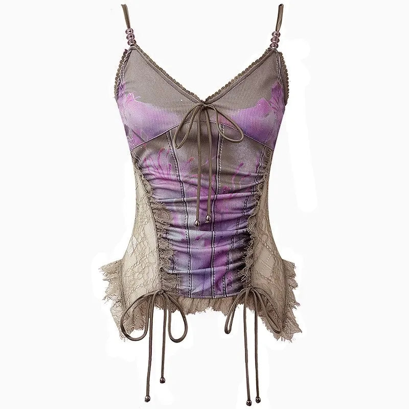 Gothic Top Lady Sleeve Forget Tie Dye Crop Top Streetwear