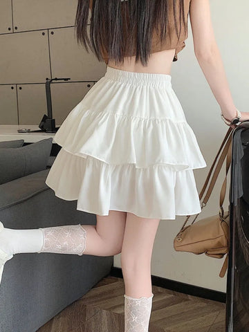 Ruffle Shirt Skirt in Pink High Waist A-Line for a Sweet Kawaii Look in Spring