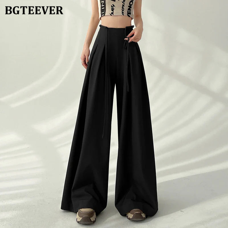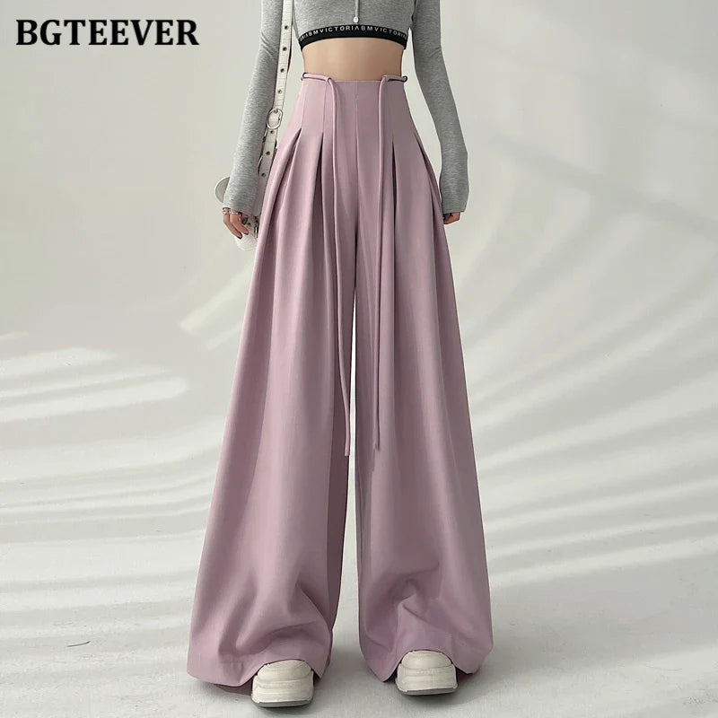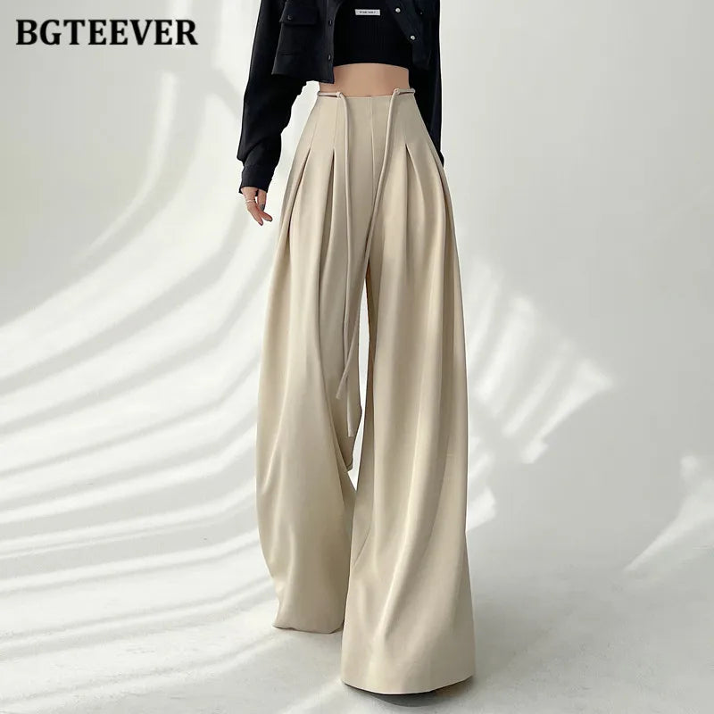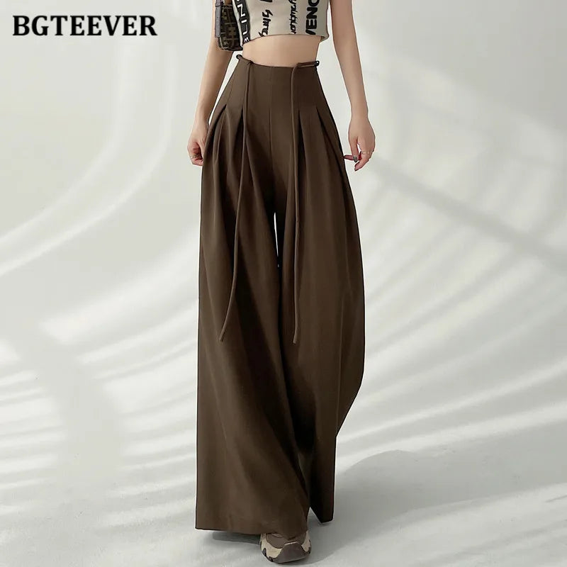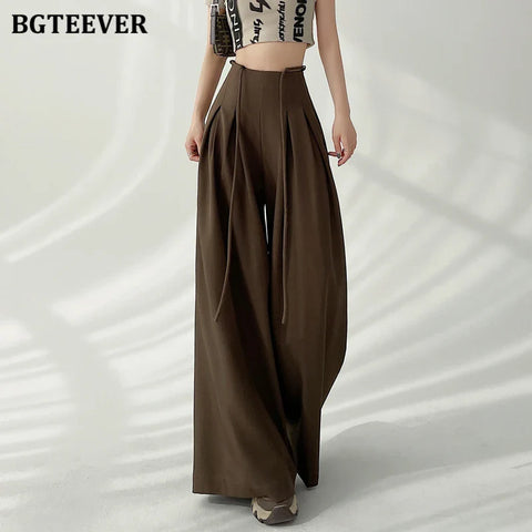 Wide High-Waist Soft-Girl Pants with Pockets for Spring/Summer