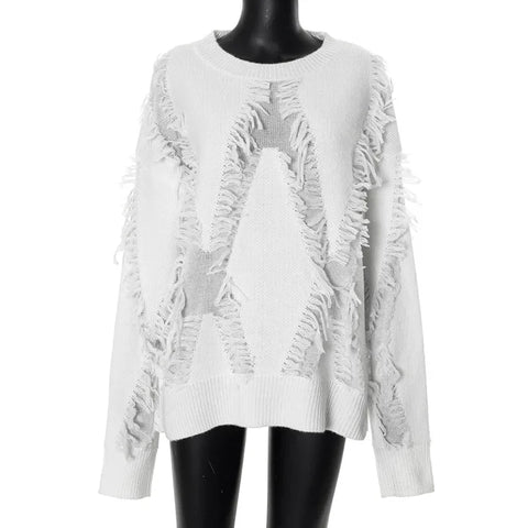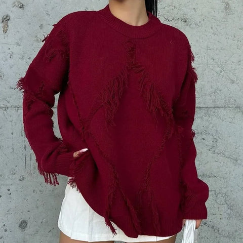 Y2K Oversize Pullover for Women with Fringes Fashionable Casual