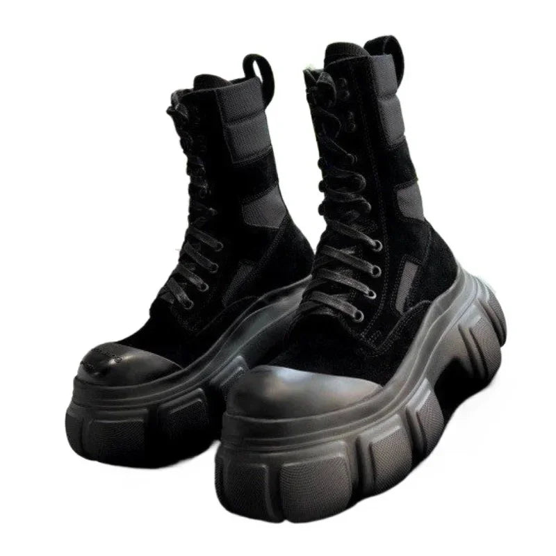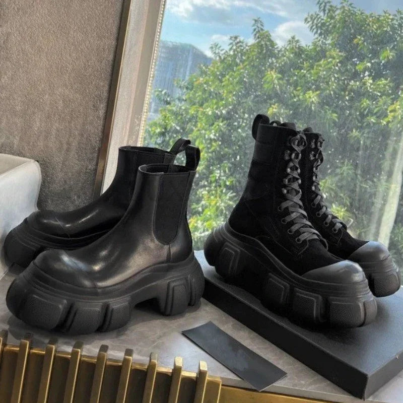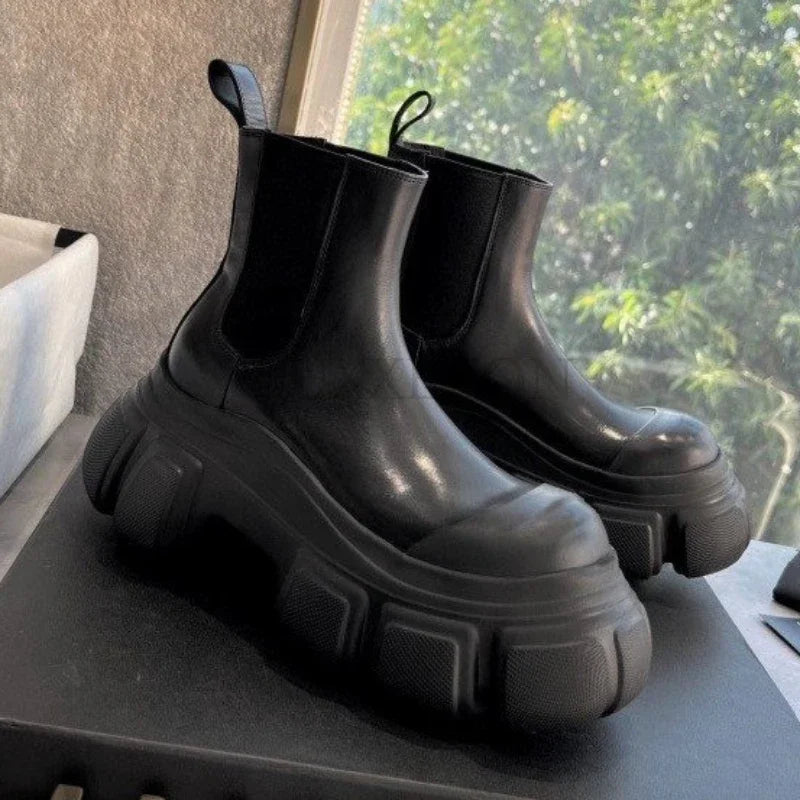 Gothic Platform Ankle Boots Chelsea Black with Thick Sole for Women