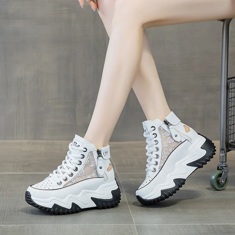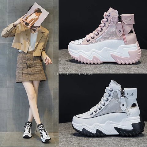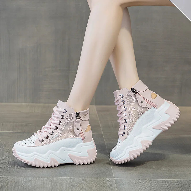 Powder Pink Platform Sneakers with Side Zipper for Women