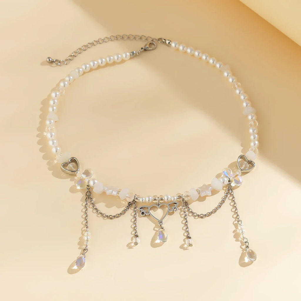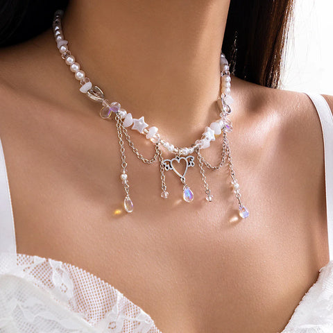 E-girl Charm Necklace with Crystal Beads and Imitation Star