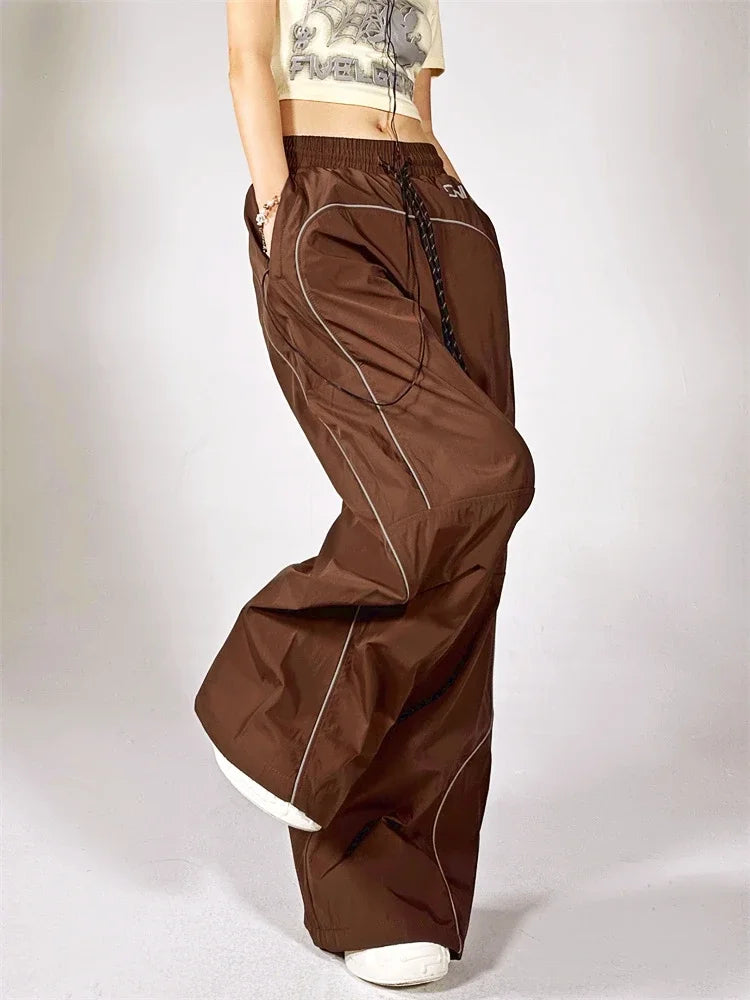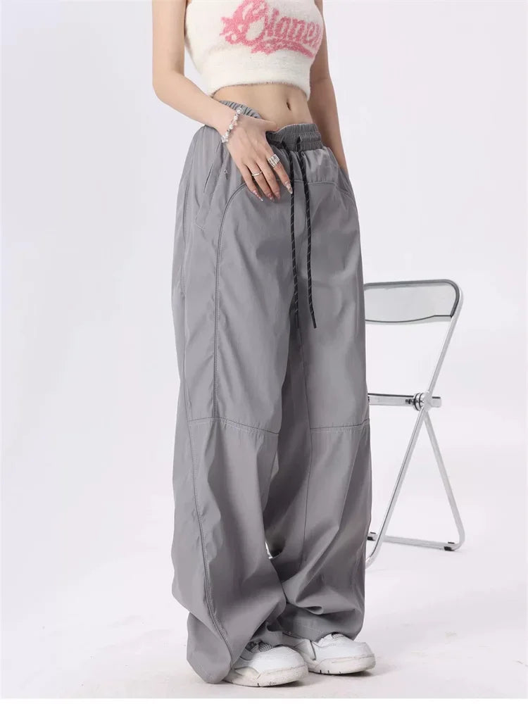 Gorpcore Cargo Pants Women Black and Gray Shiny