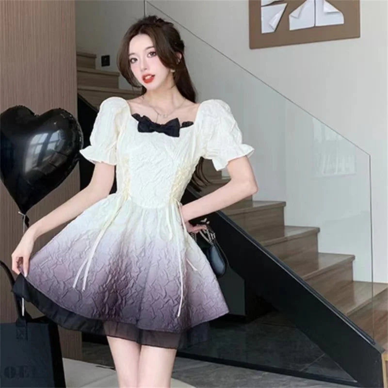 Gothic Lolita Dress with Puff Sleeves and Square Collar
