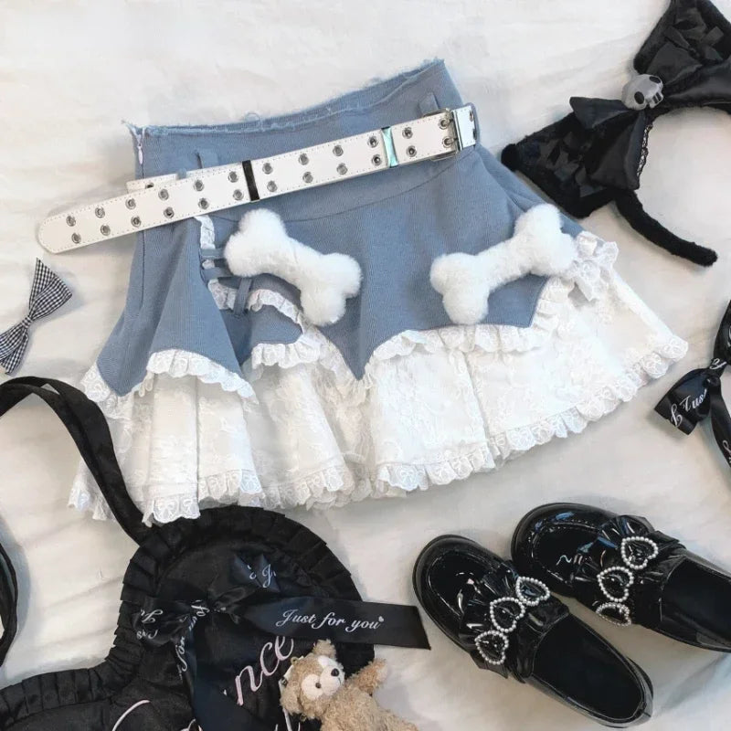 Kawaii Lolita Mini Skirt with Plush Bones from the 90s