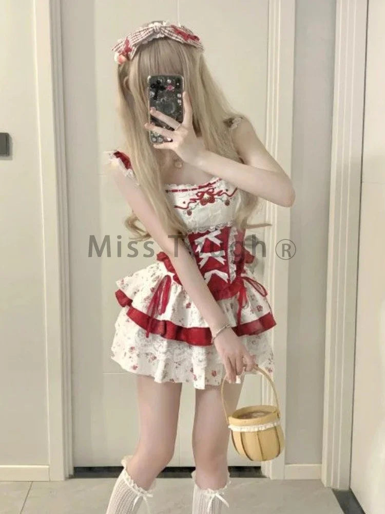Gothic Lolita Dress Set Refined and Charming White and Red