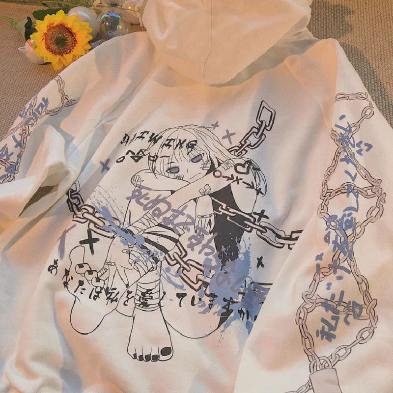 - Vibrant Print: An eye-catching anime illustration with chains and graphic elements reminiscent of E-Girl and Y2K aesthetics.