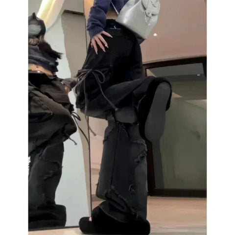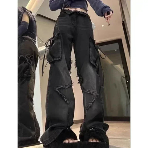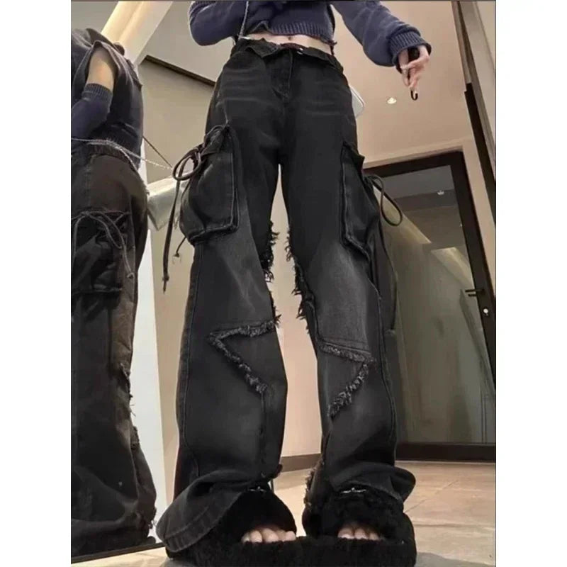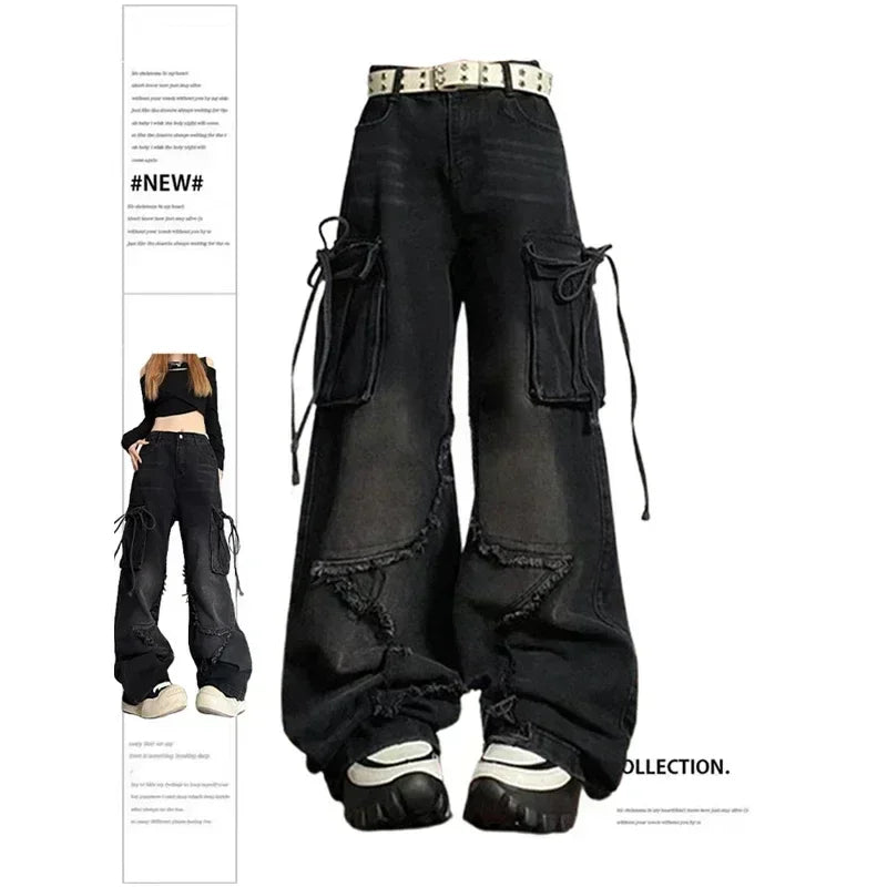 Cargo Jeans in Gothic Style with Wide Leg Cut and High Waist