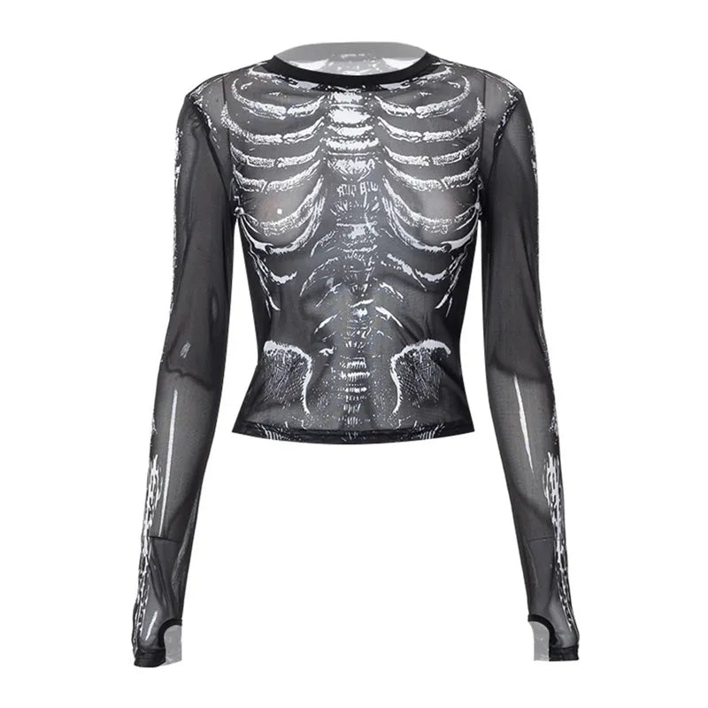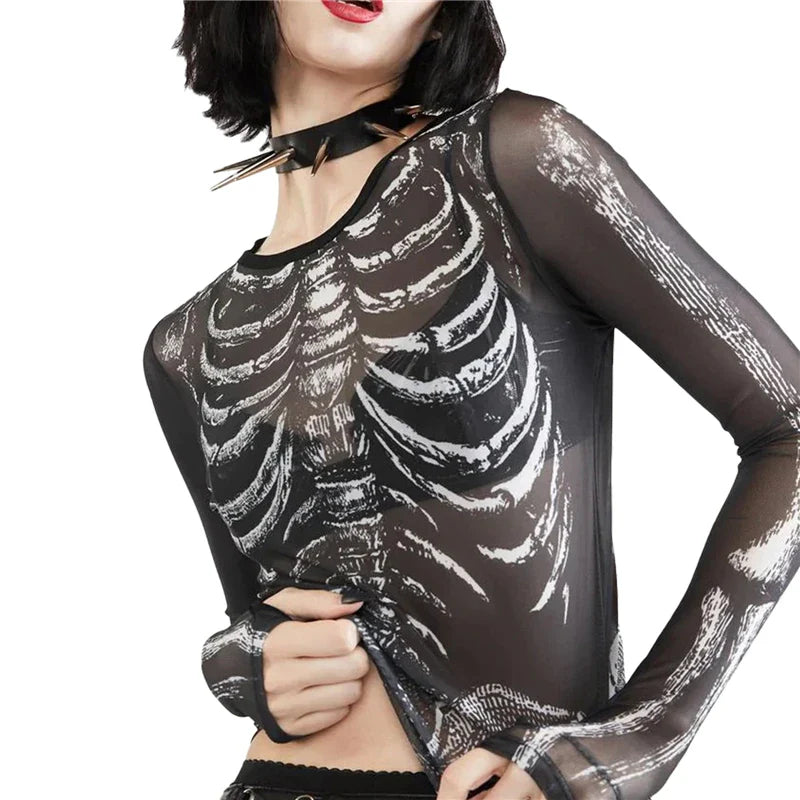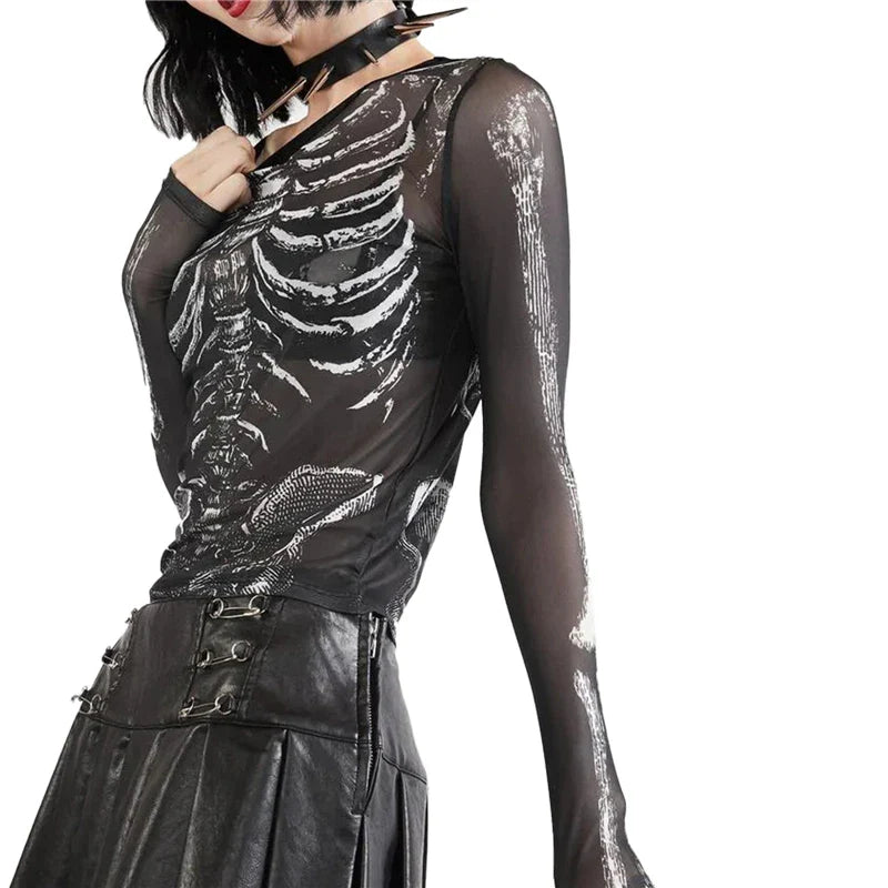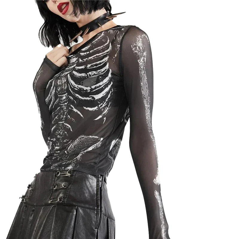 Gothic Punk Shirt for Women with Skeleton Print