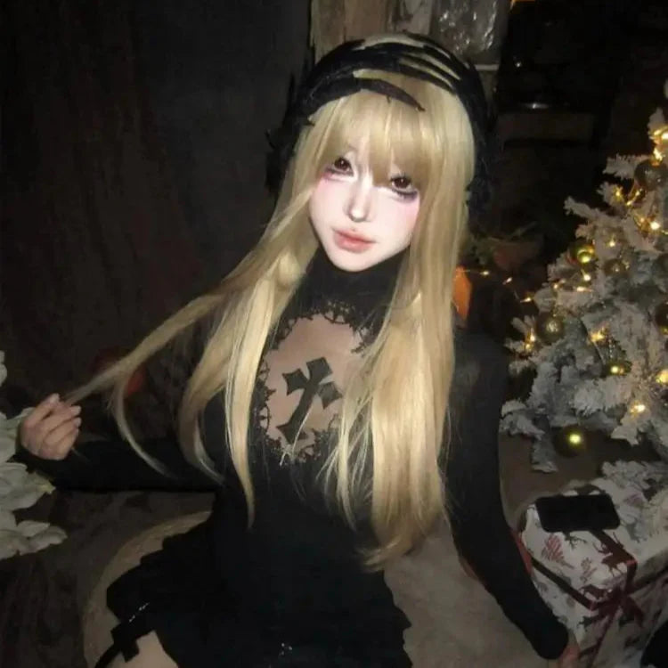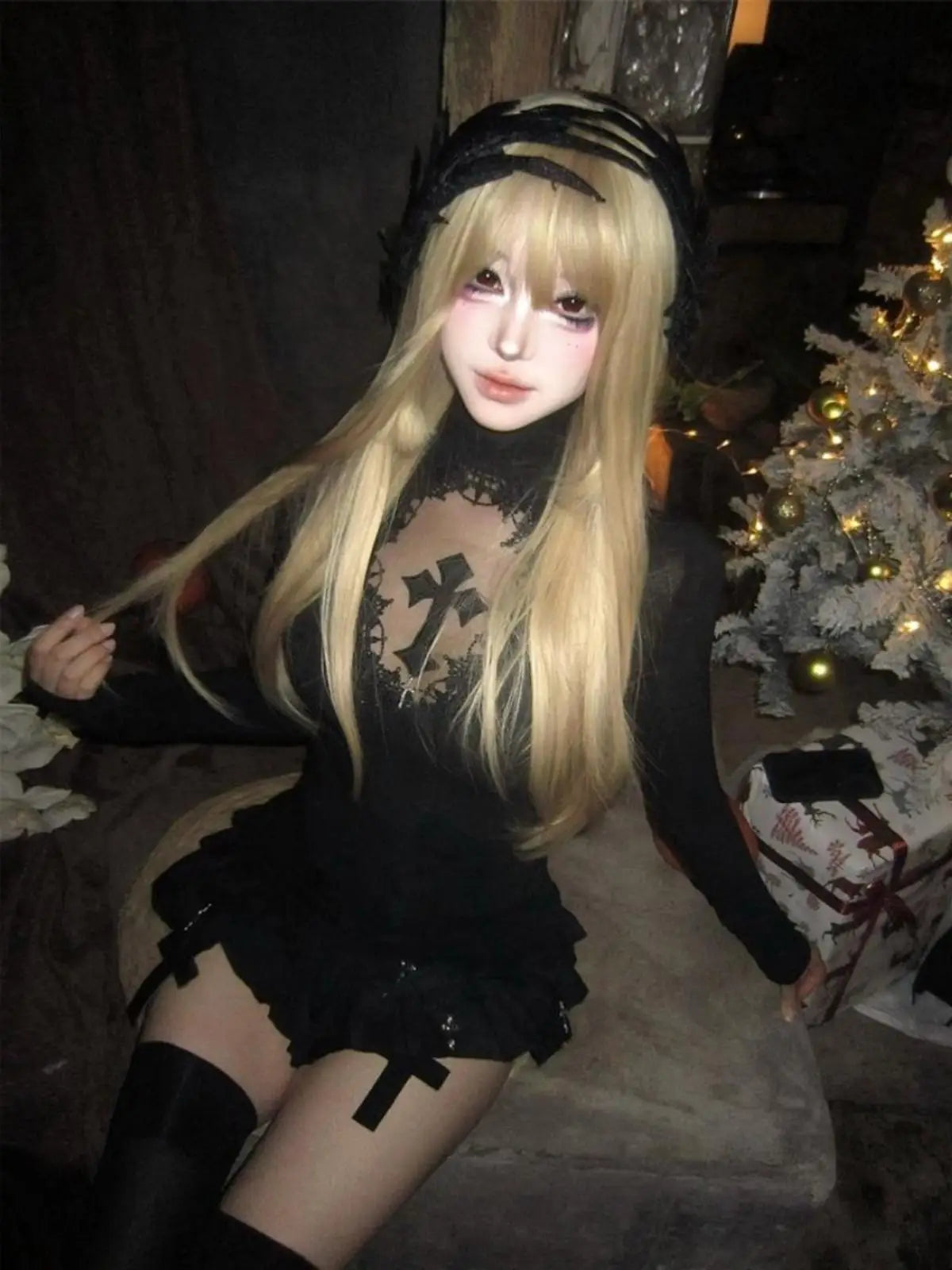 Dive into the captivating world of Gothic style with our Cropped Black T-Shirt. This uniquely designed top features flattering long sleeves and a delicate cross-shaped neckline. Made from high-quality, soft fabric, it guarantees comfort and elegance throughout the day. The embossed detail and deep black hue create a landscape silhouette that highlights your originality. You can easily pair it with leather skirts or ripped jeans to create a bold, alternative look that's perfect for nights out with friends or for going out. Express your personality with a touch of Gothic while staying comfortable and fashionable. The black cropped T-shirt is a must-have for any daring wardrobe!