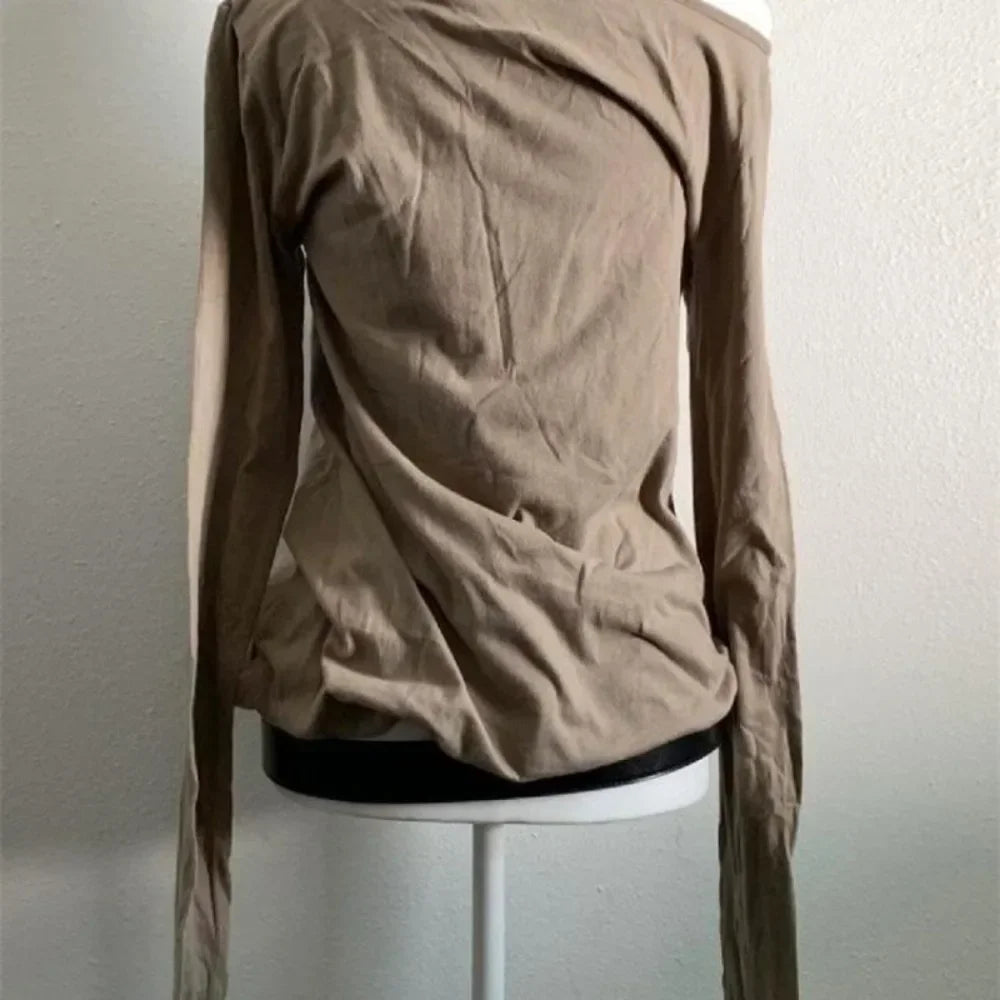 Brown Grunge T-Shirt Y2K with Hole Pattern and Skull Print