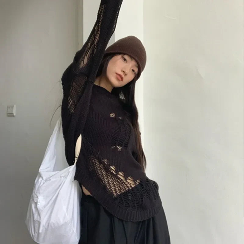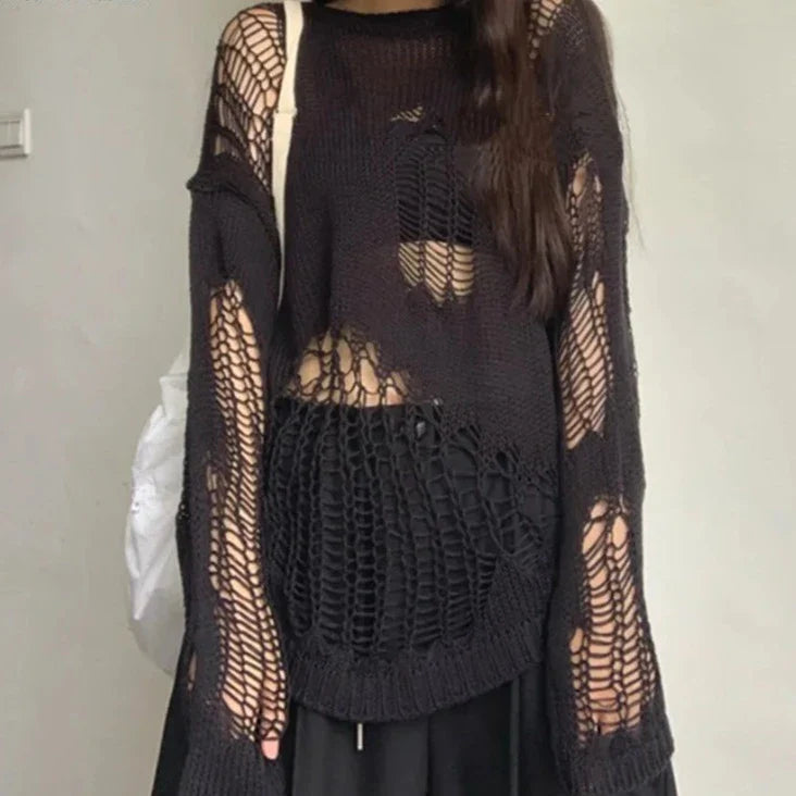 Oversized Gothic Sweater with Cut-Outs and Transparency