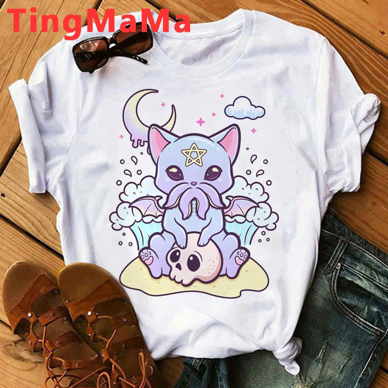 Unisex Graphic T-Shirt Pastel Goth with Cat Motif