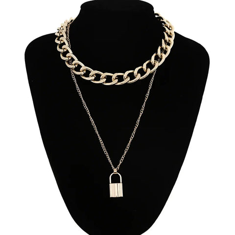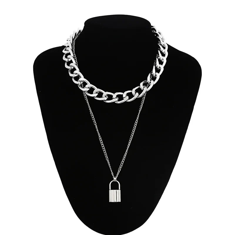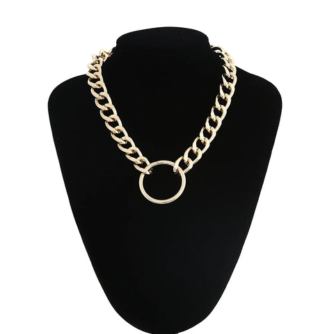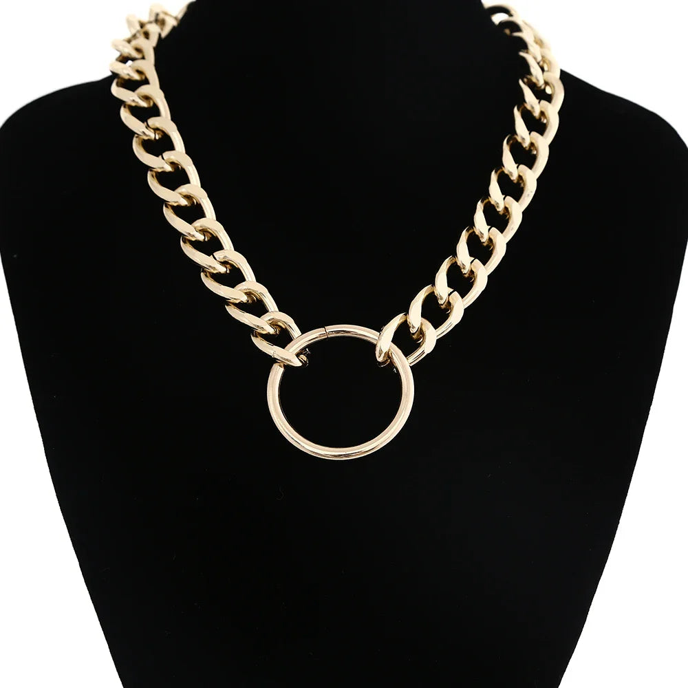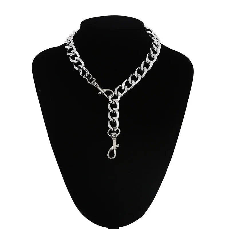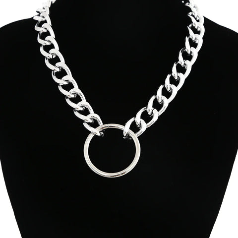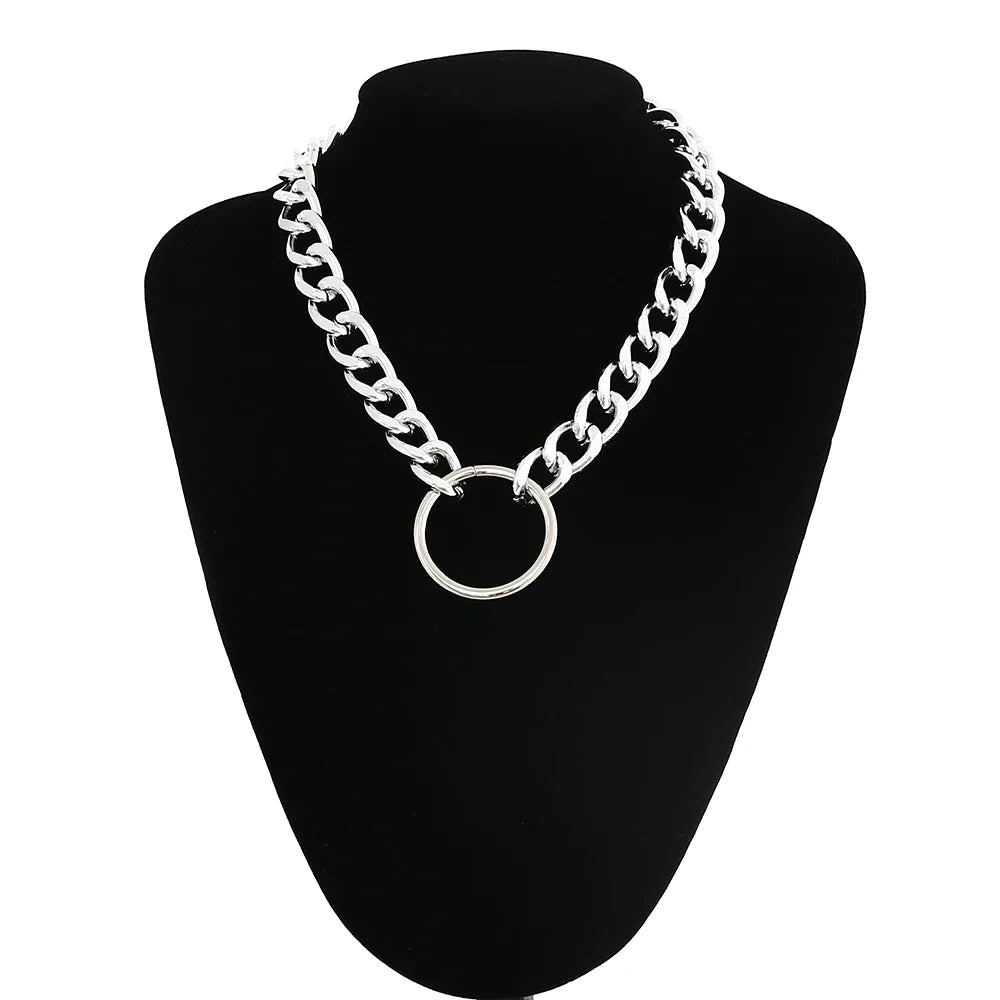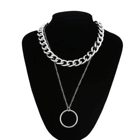 Make a bold statement with our necklace featuring large chains, an essential jewelry piece for any wardrobe that embodies the rebellious spirit of alternative fashion. This massive yet elegant necklace captures the essence of Gothic, E-Girl, and Grunge aesthetics while being versatile enough for Y2K and Soft-Girl outfits. The centerpiece of this necklace is a large central ring that serves as a connection point for thick, silver-colored metal chains that appear glitzy and daring. Whether it's a punk ambiance or chic metal detail, this necklace is a chameleon in the world of accessories. Made from high-quality materials, it withstands the test of time and trends. Add a touch of character to a solid-colored sweater or pair it with a black dress for an evening event. No matter which outfit you choose, this necklace is meant to be the focal point, drawing attention and completing your unique style.