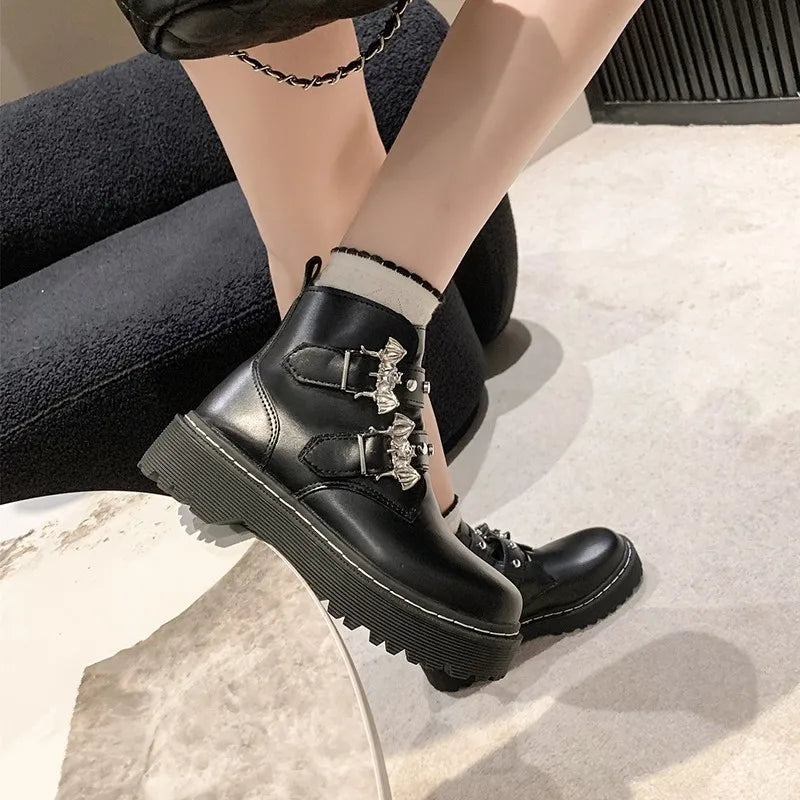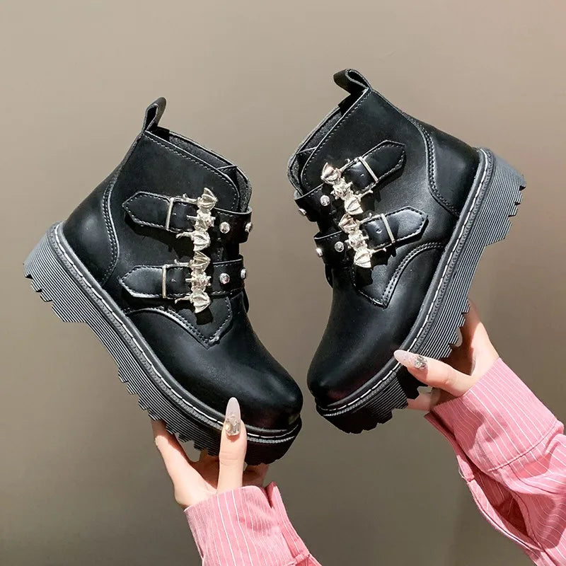 Gothic Women's Boots with Bead Chain Stylish Black Platform Booties in Punk Style for an Alternative Outfit*